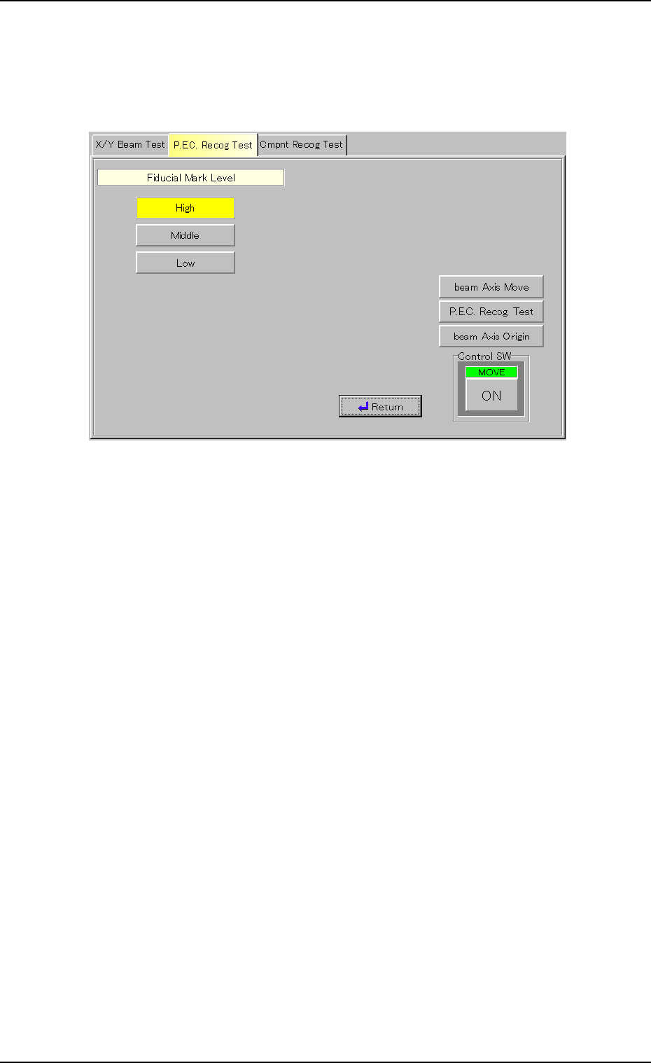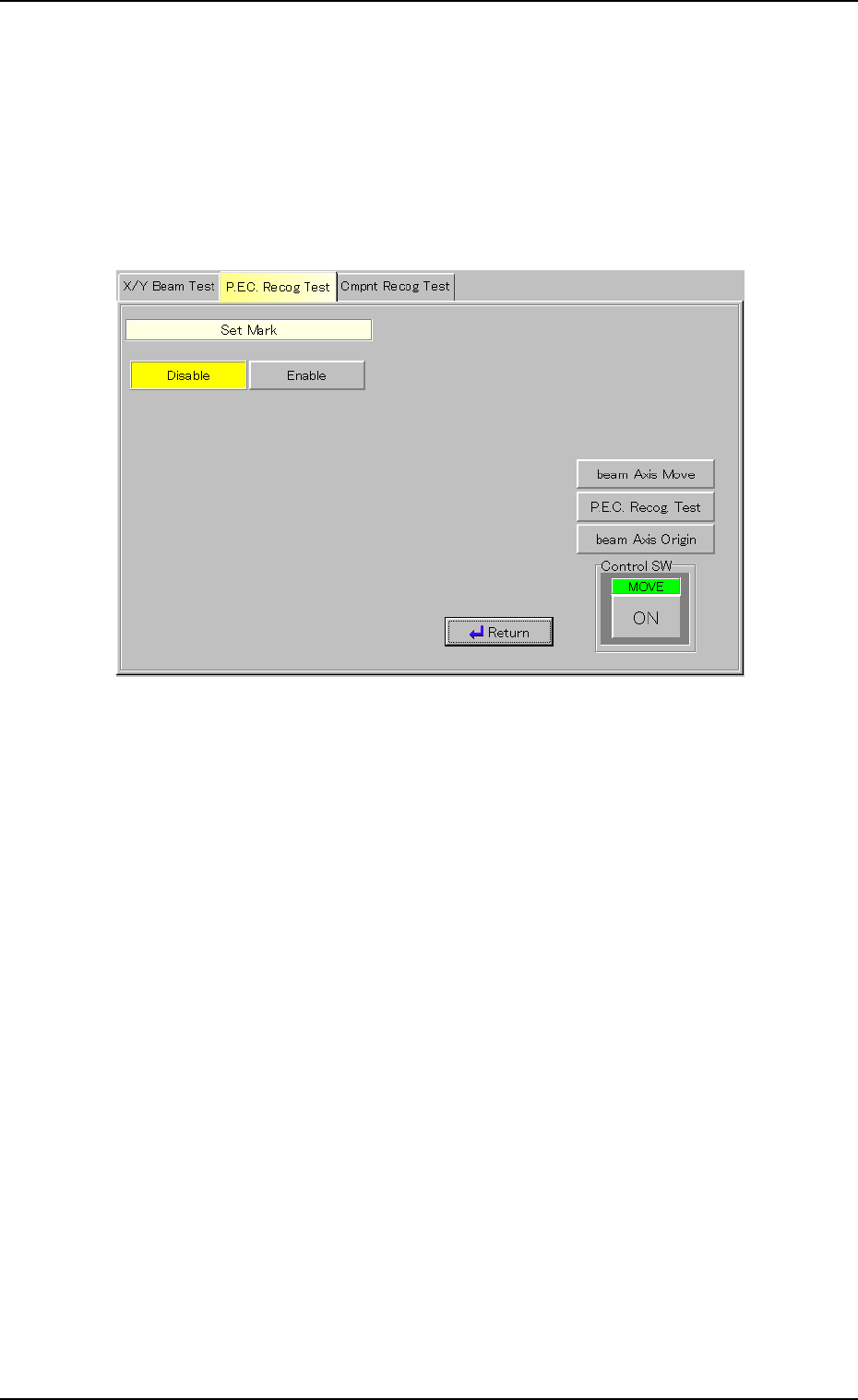 (3) When the [Return] button is pressed, the "P.E.C. Recog Test" tab