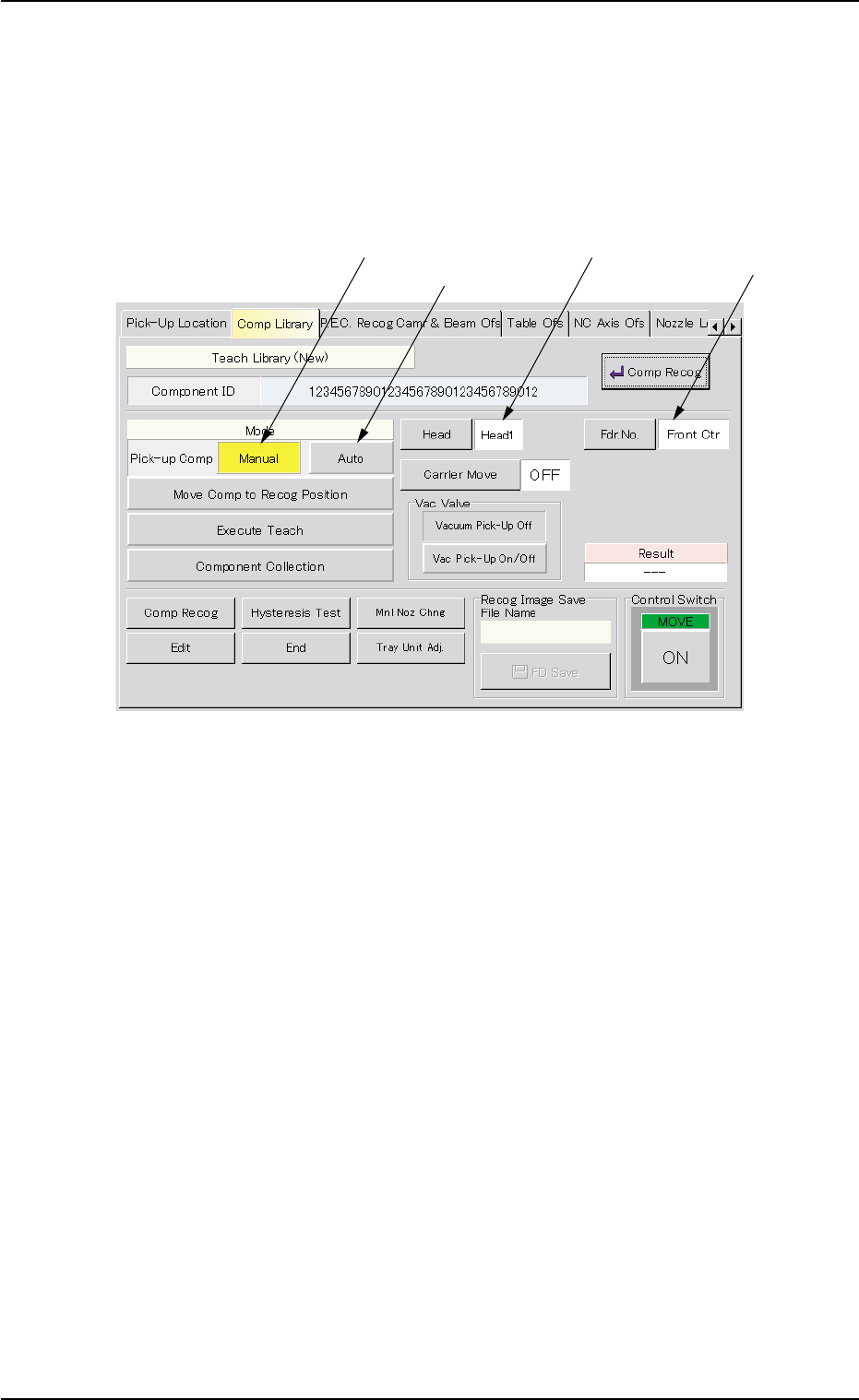 The component to be taught must be picked up from the selected feeder.
