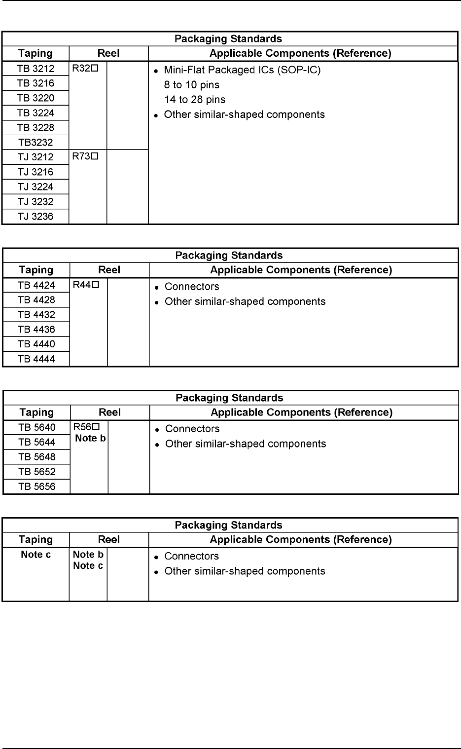 40. Applicable Components (Reference) (1) T aped Components • T apes and Reels: JIS/EIAJ or its equivalent T ape Width: 8 mm T able 2A3 T ape Width: 12 mm T able 2A4 T ape Width: 16 mm T able 2A5 T ape Width: 24 mm T abl…