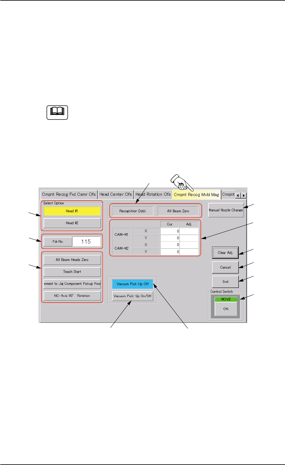 AHB01ESPP 5.1 1 "Cmpnt Recog Mvbl Mag" T ab The corresponding tab sheet enables the operator to perform the teach- ing operation on the magnification of the component recognition cam- era (movable). The offset …
