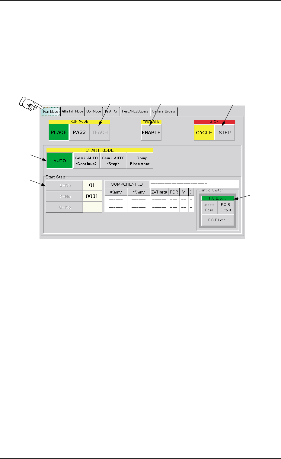 AHB01ESPP *2 TEST RUN Press the [ENABLE] button to perform a test run. "TEST RUN" appears beside "Run Mode" on the "AUTO OPN." win- dow (upper right field of the status bar). When the machin…