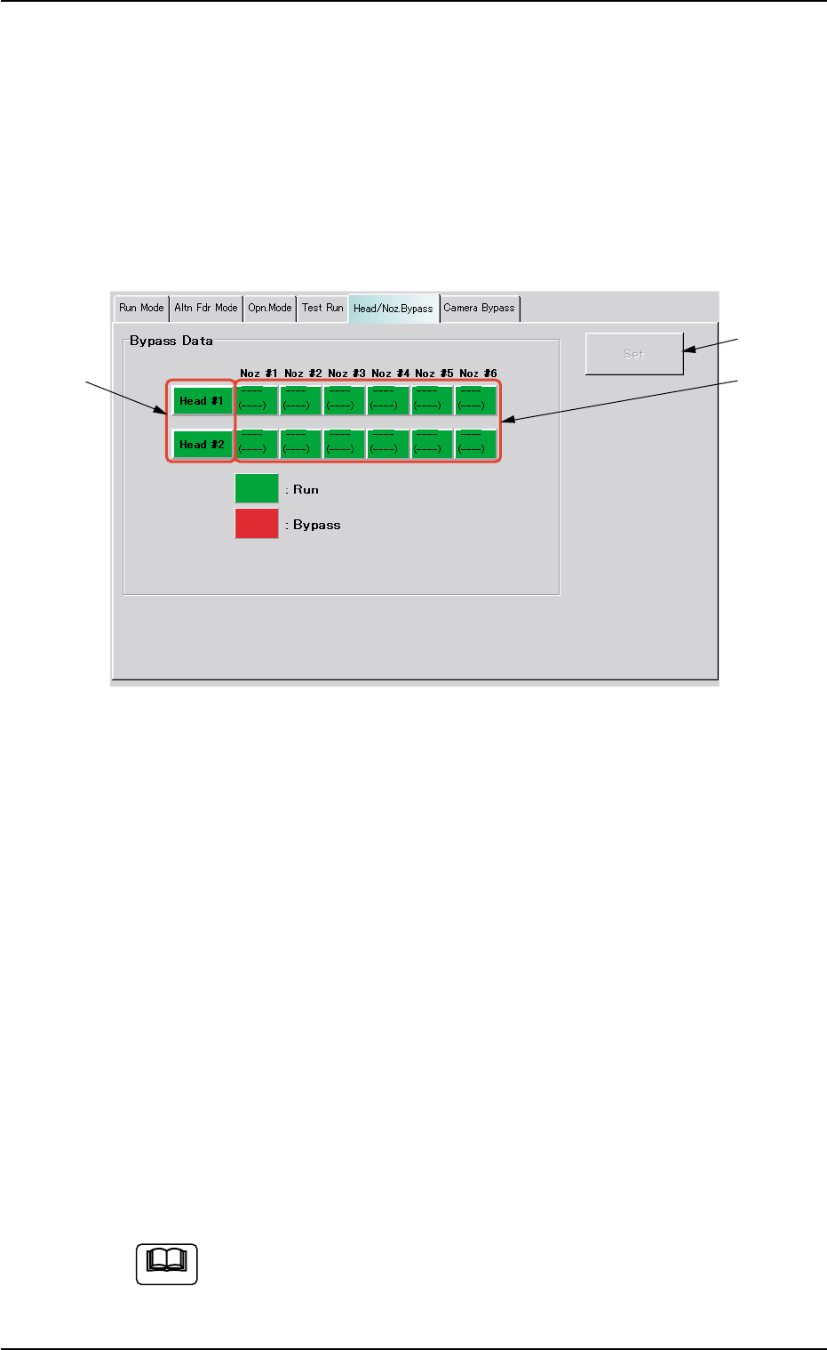 When the "Head/Noz. Bypass" tab is pressed in the "OPN. MODE"
