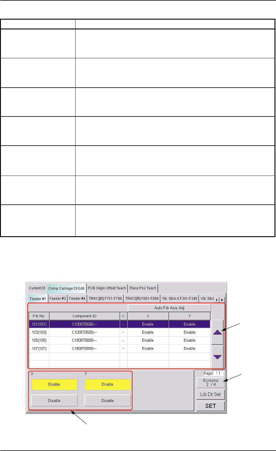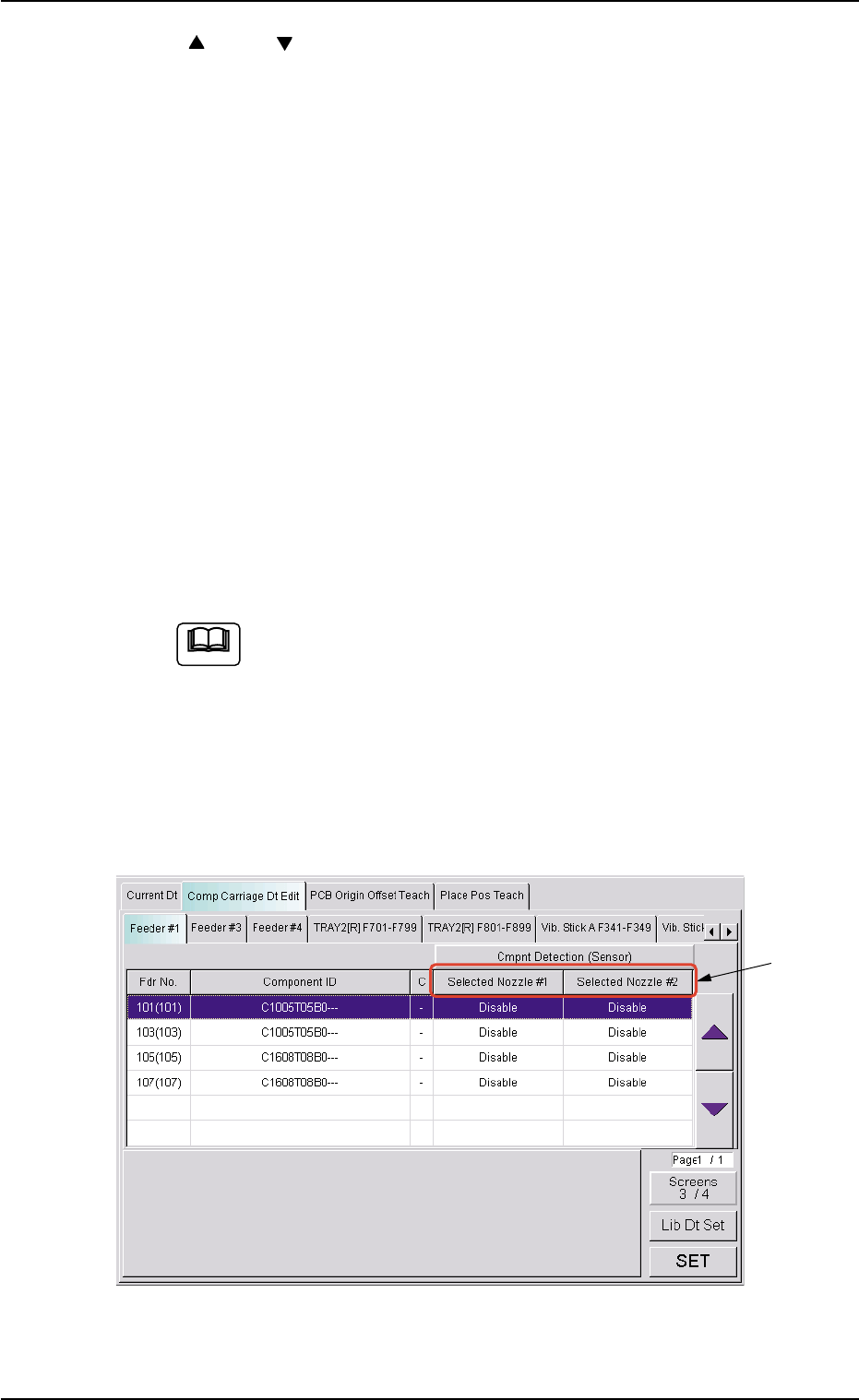 AHB01ESPP *3 [ ] and [ ] Buttons Select the component for which the component carriage data should be changed. When the registered components occupy more than 1 page, use the scroll bar (up and down arrows) on the right …