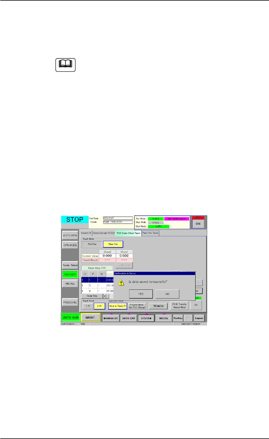recognition is completed normally, new P.C.B. origin offsets X and Y