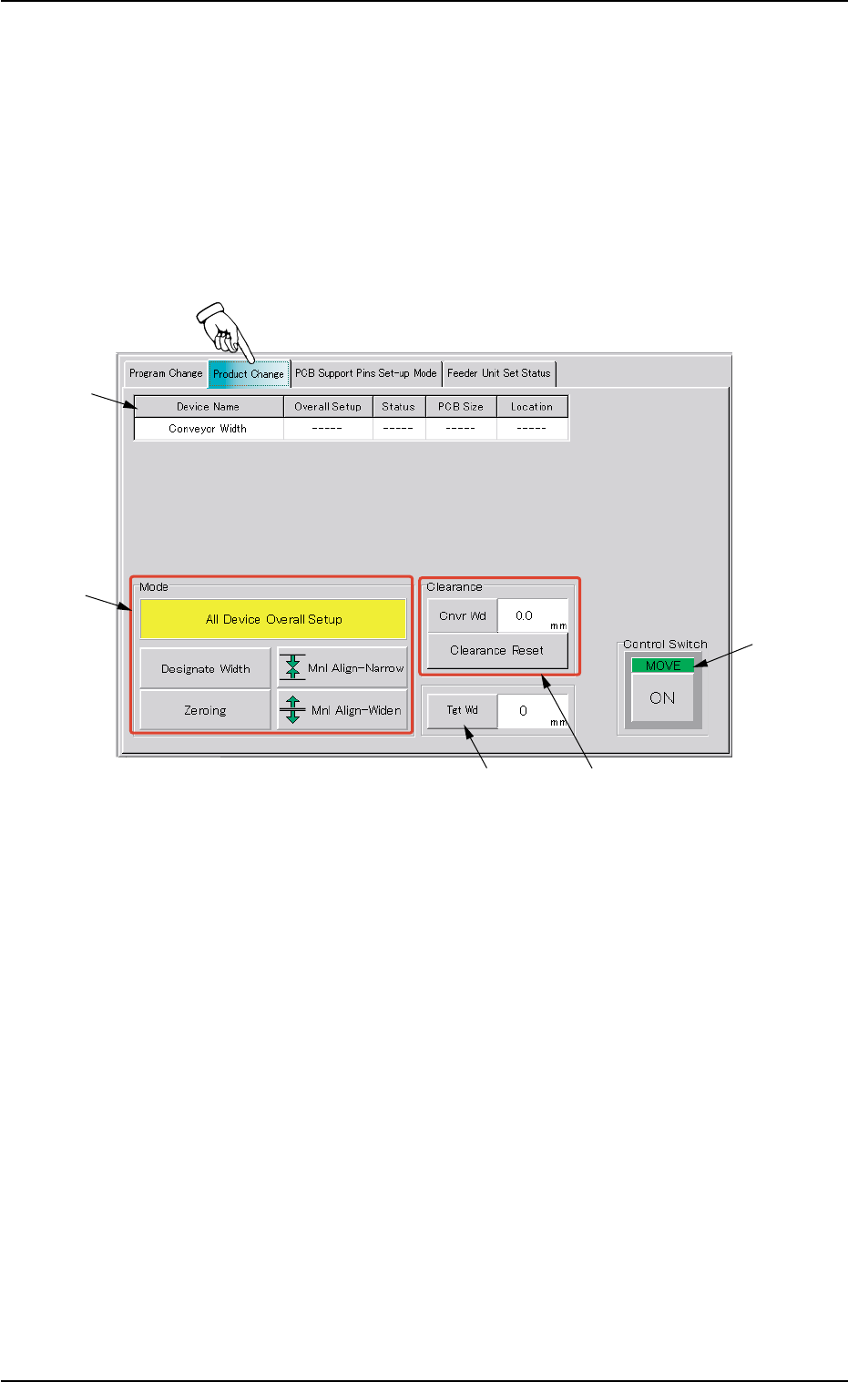 When the "Product Change" tab is pressed in the "PRGM. CHG." win-