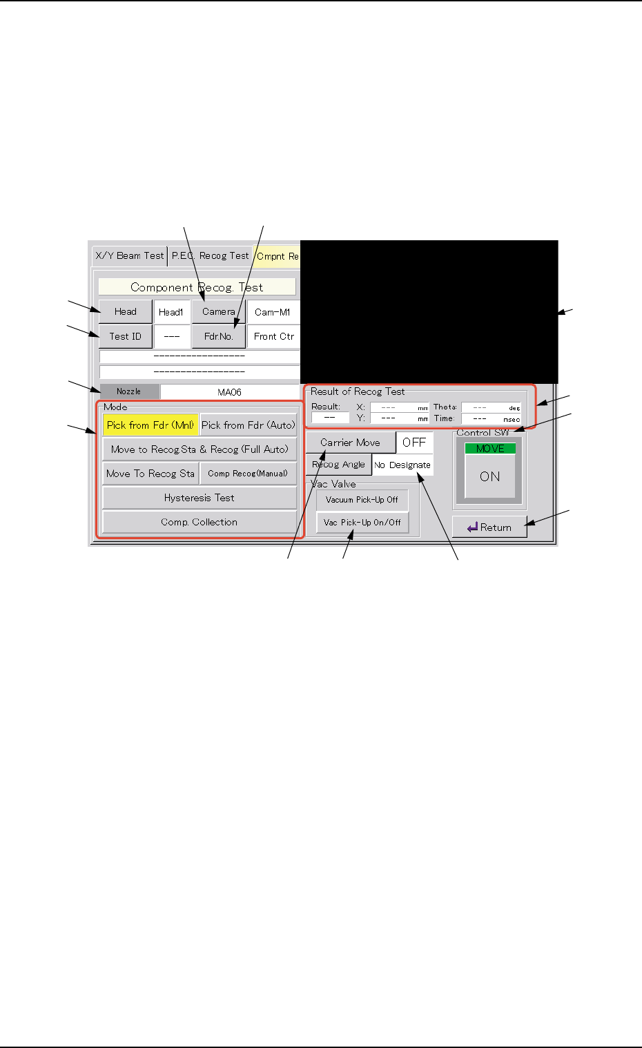 This button enables the operator to select the component recogni-