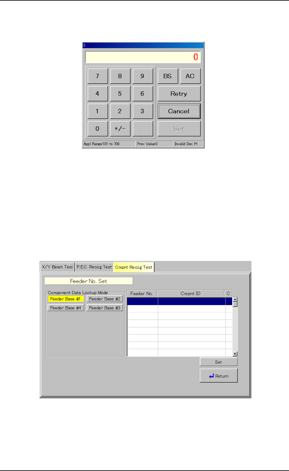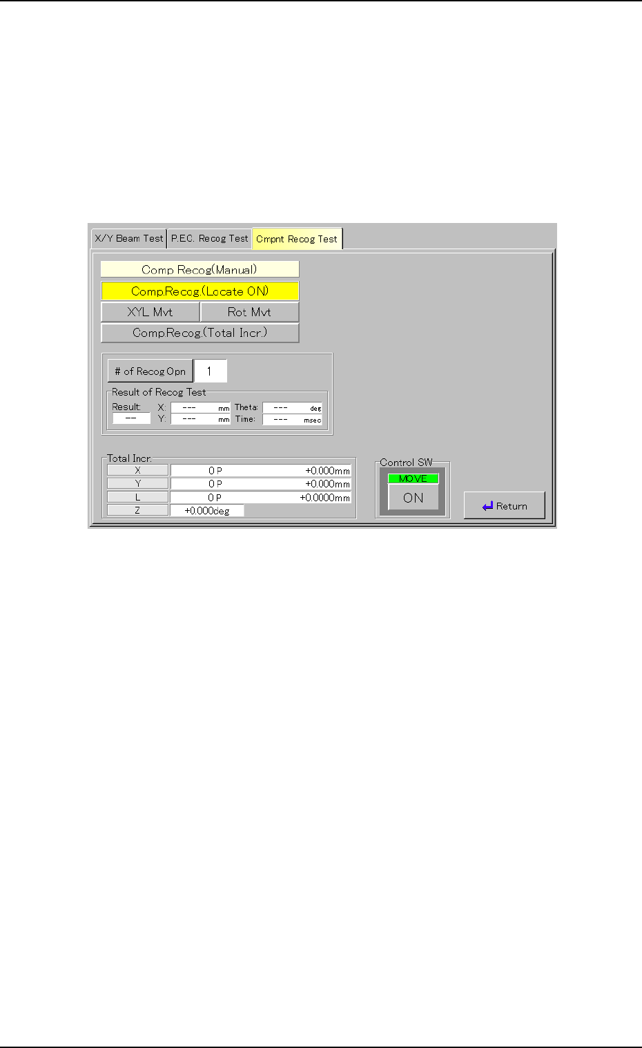 (4) When the [Return] button is pressed, the "Component Recog. Test"