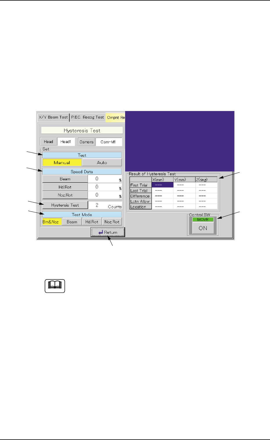 When the [Hysteresis Test] button is pressed in the "Component Recog.