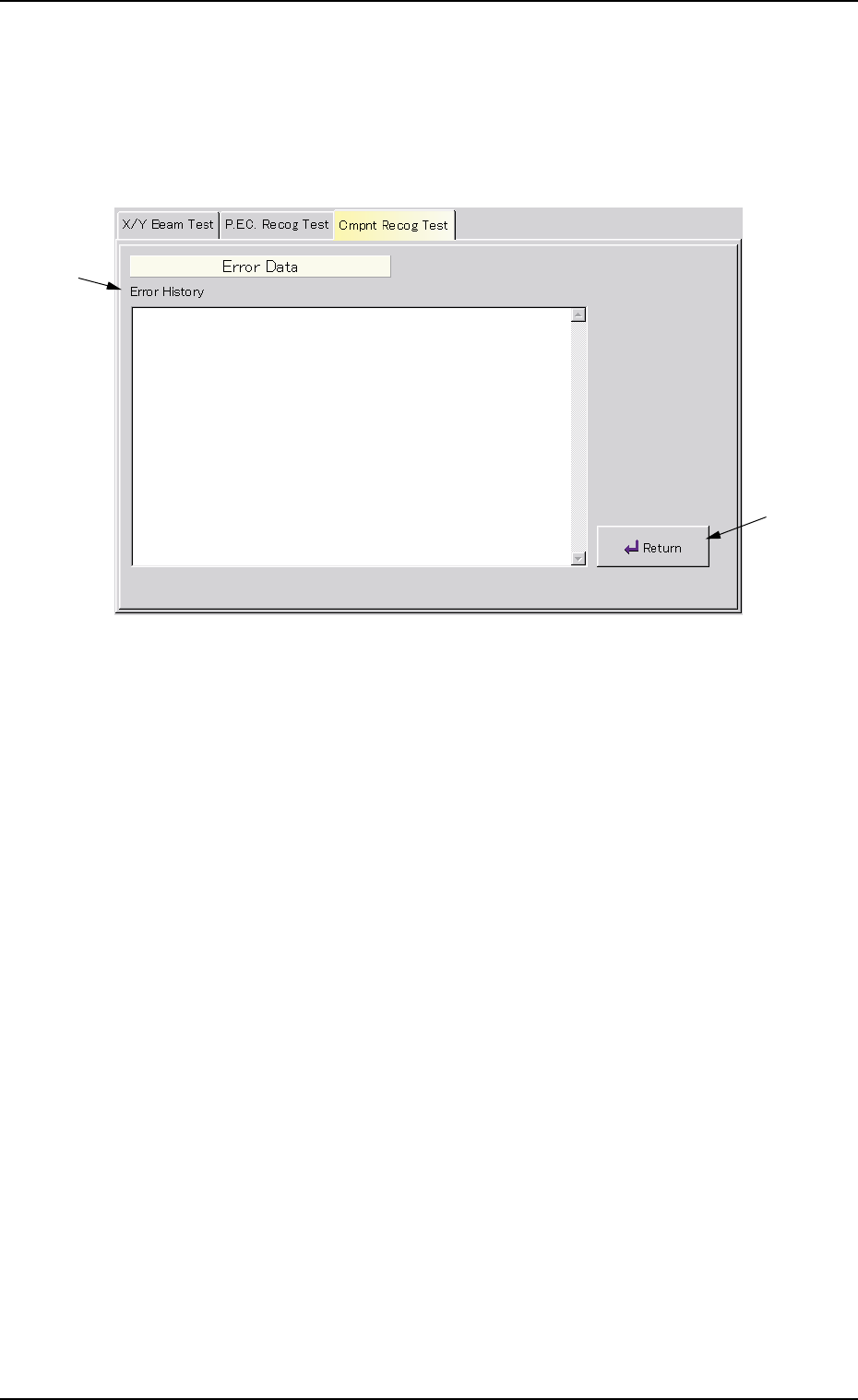 AHB01ESPP 3.3.4 Display of Detailed Error Data • Window Layout When the [Error Data] button is pressed in the "Cmpnt Recog T est" tab sheet, the following "Error Data" window appears. Fig. 2F39 "…