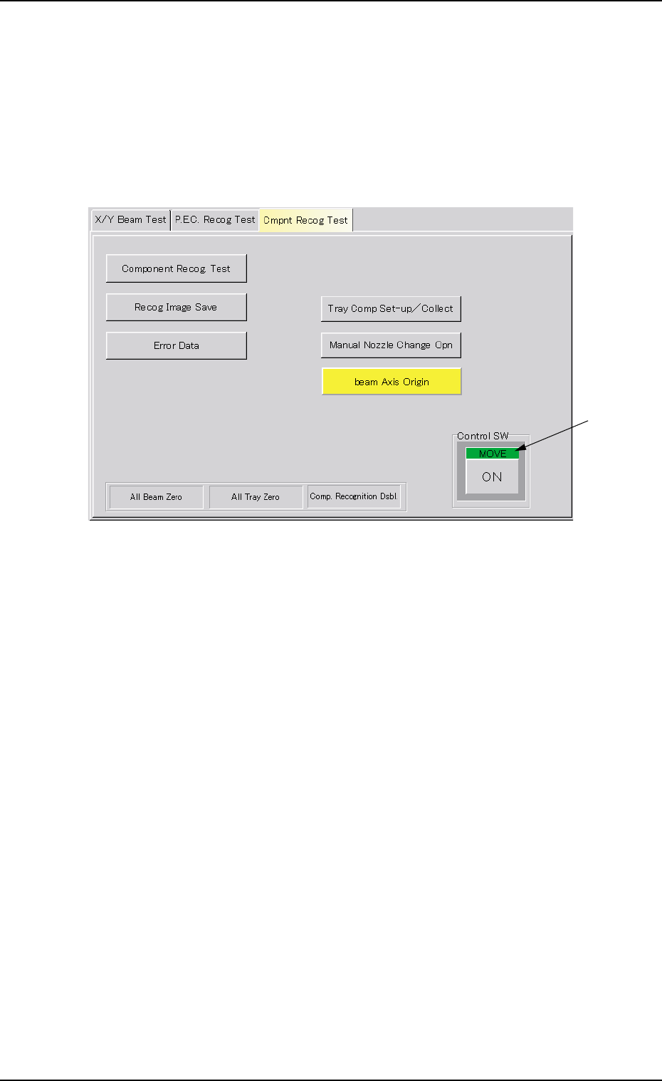 When the [beam Axis Origin] button is pressed in the "Cmpnt Recog