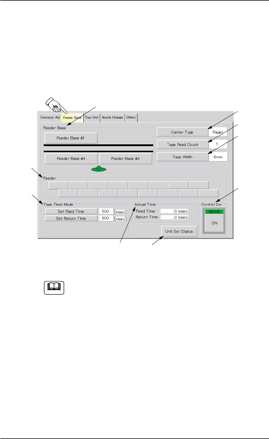 AHB01ESPP *2 "Feeder" Group Box When one of the buttons in the "Feeder Base" group box (*1) is pressed, the corresponding feeder No. buttons appear in this group box. Press the feeder No. button of th…