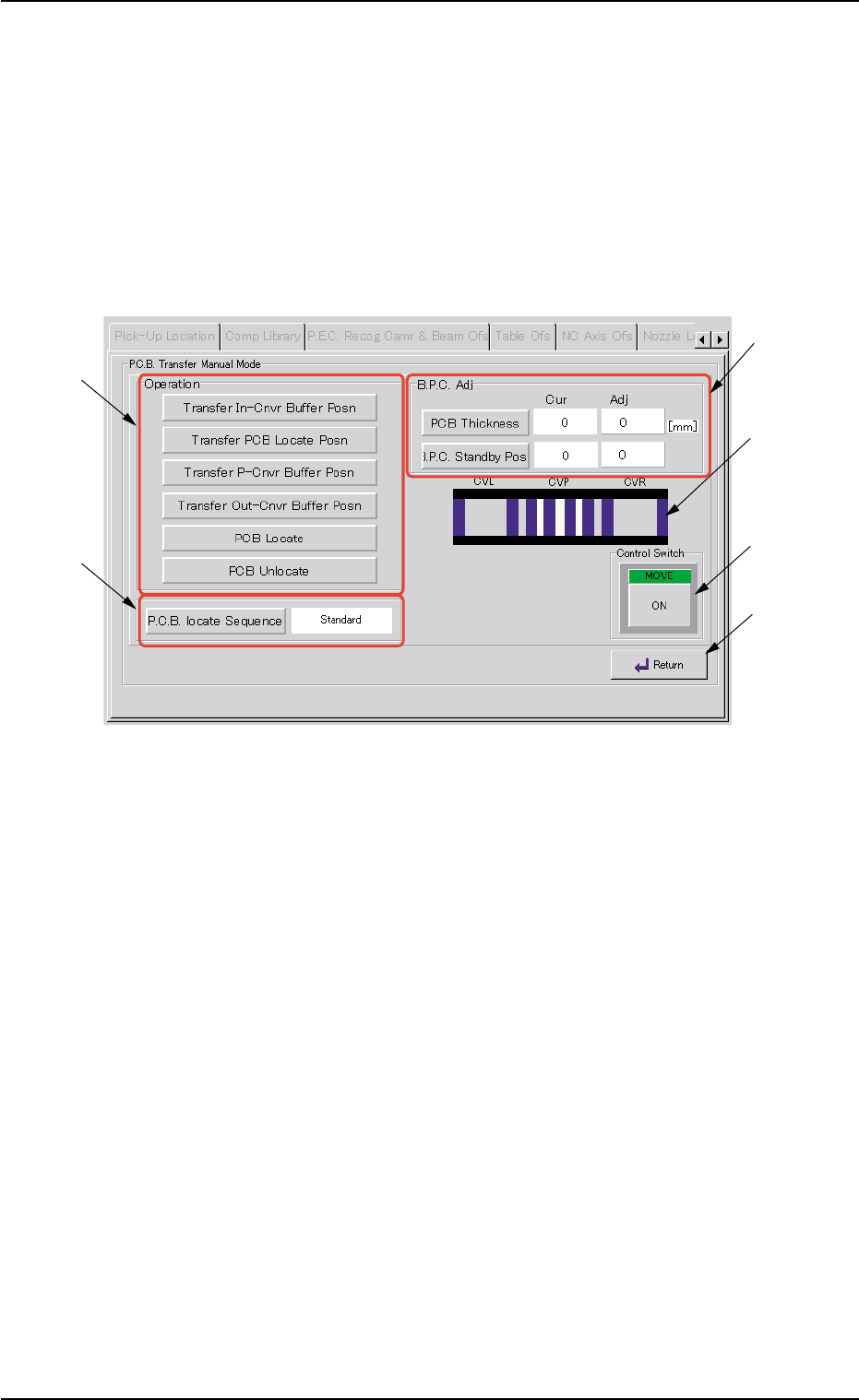 When the [P.C.B. Transfer Manual Mode] button is pressed in the "P.E.C.
