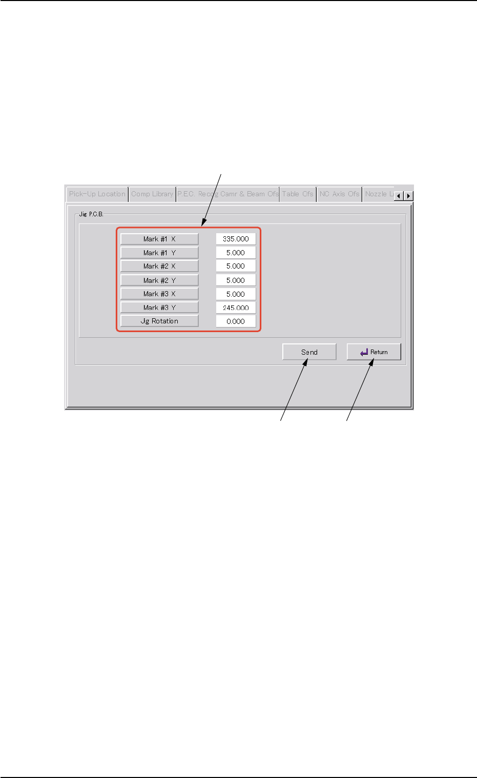 When the [Jig P.C.B.] button is pressed in the "P.E.C. Recog Camera &