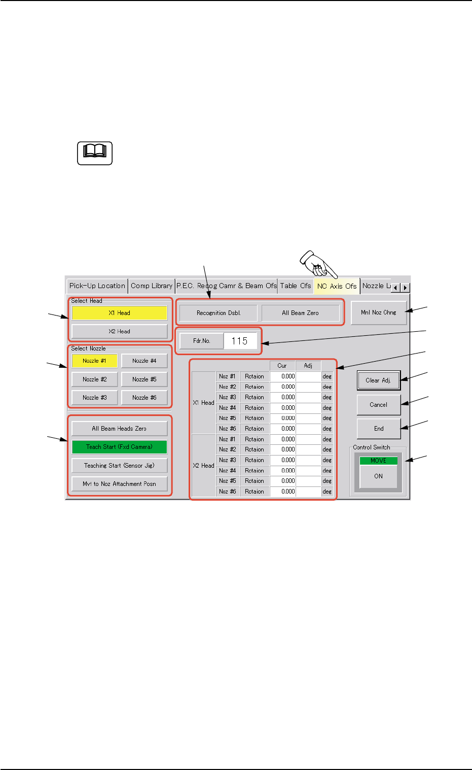 When the "NC Axis Ofs" tab is pressed in the "TEACHING" window