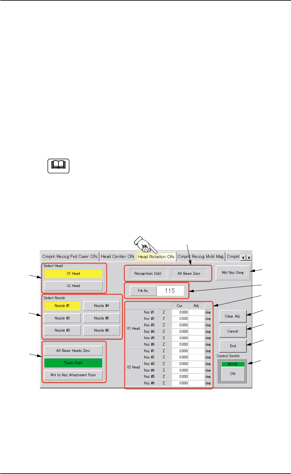 AHB01ESPP 5.10 "Head Rotation Ofs" T ab The corresponding tab enables the operator to perform the teaching operation on the head rotation offset data. This tab sheet allows the operator to perform a teaching op…