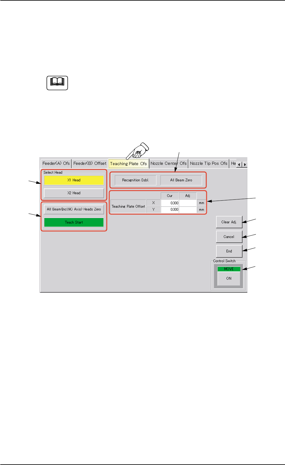 When the "Teaching Plate Ofs" tab is pressed in the "TEACHING" win-