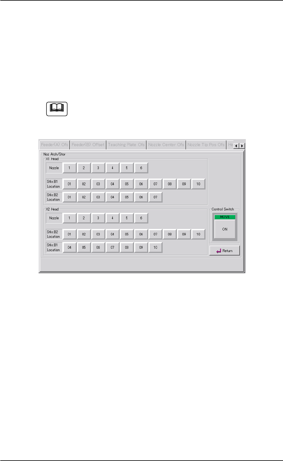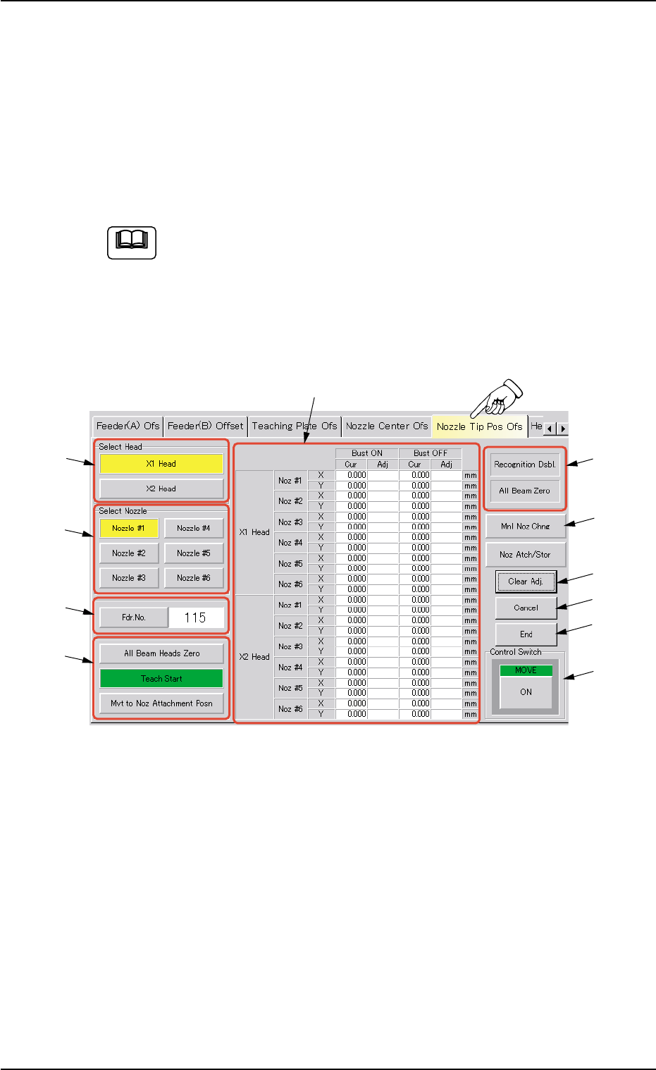 AHB01ESPP 5.20 "Nozzle Tip Pos Ofs" T ab The corresponding tab sheet enables the operator to perform a teach- ing operation on how far the nozzle tip position has deviated from the head rotational center positi…
