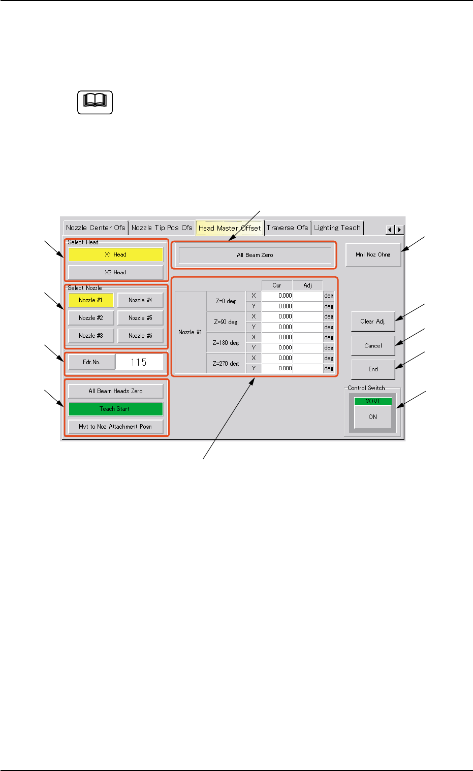 When the "Head Master Offset" tab is pressed in the "TEACHING" win-