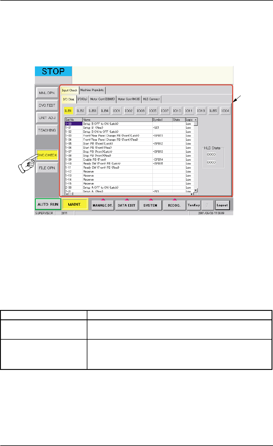 When the "Input Check" tab is pressed in the "DVC. CHECK" window
