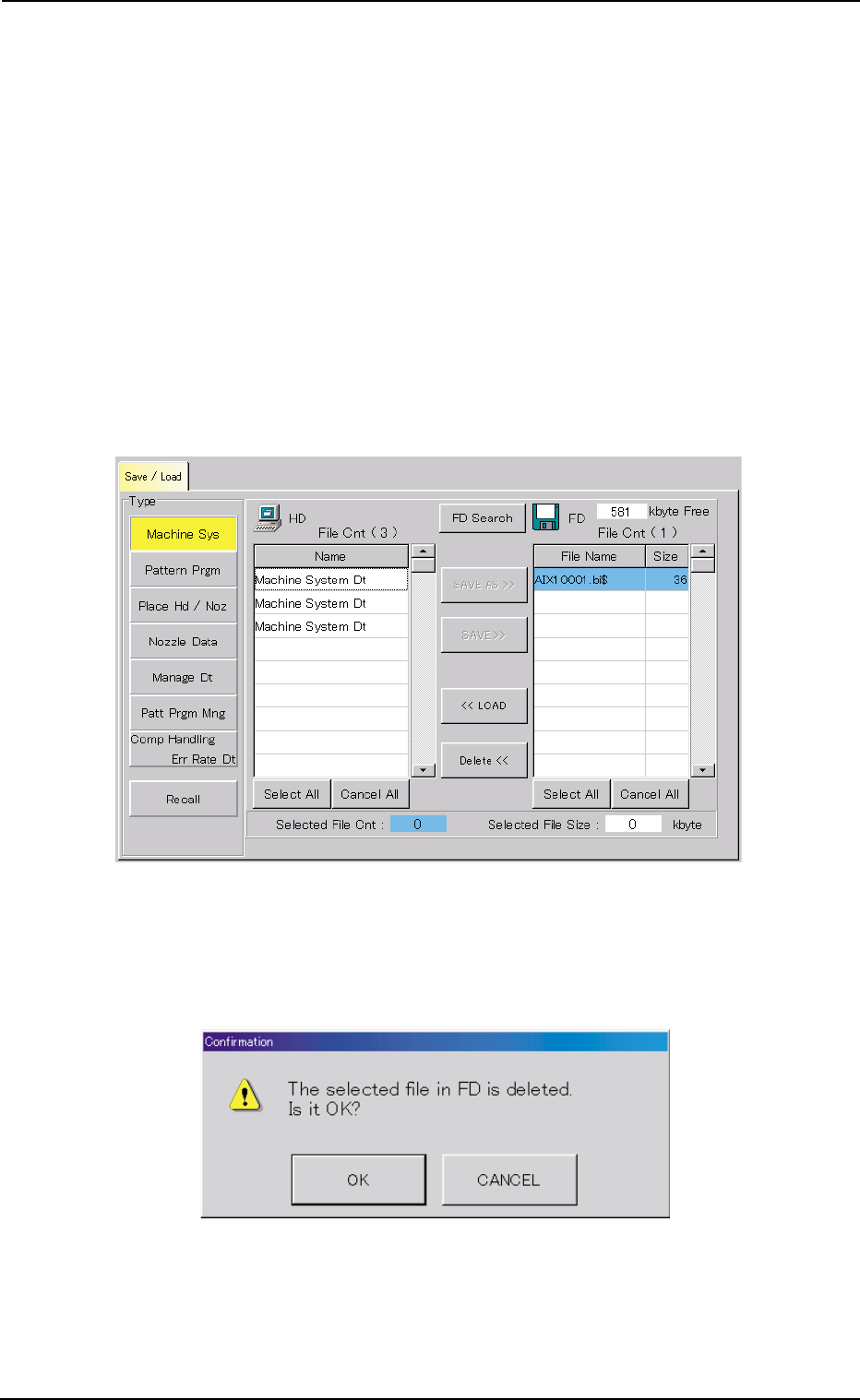 (5) When the [Delete <<] button is pressed, the following "Confirma-