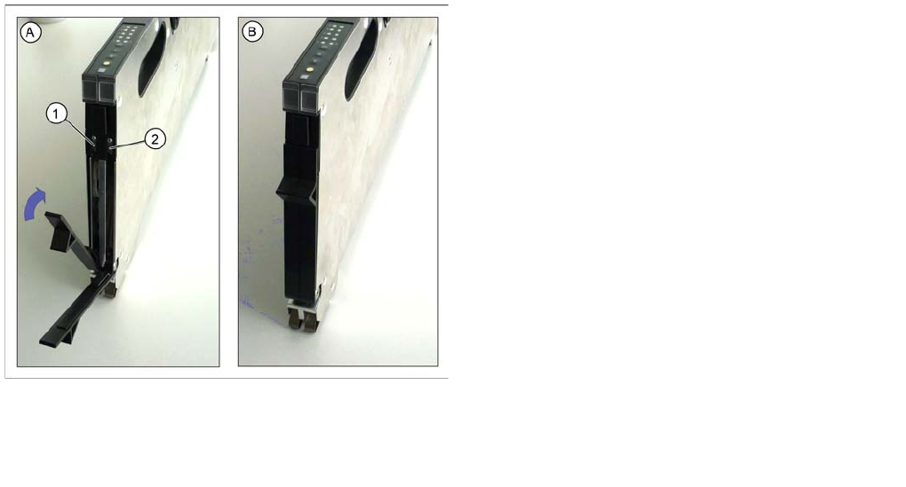►(1) Drücken Sie auf den Griff unter der LED am hinteren Ende des Zuführmoduls.
