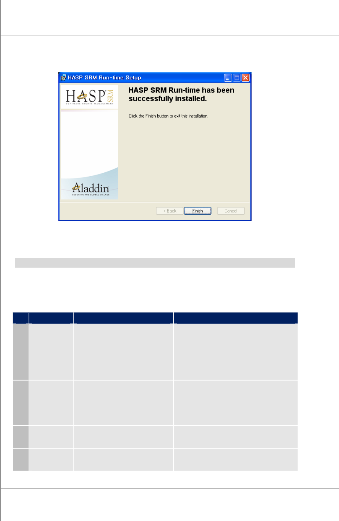 4. HASP SRM Run-time 設定檔安裝成功. 擊點 “Finish" 按鈕.