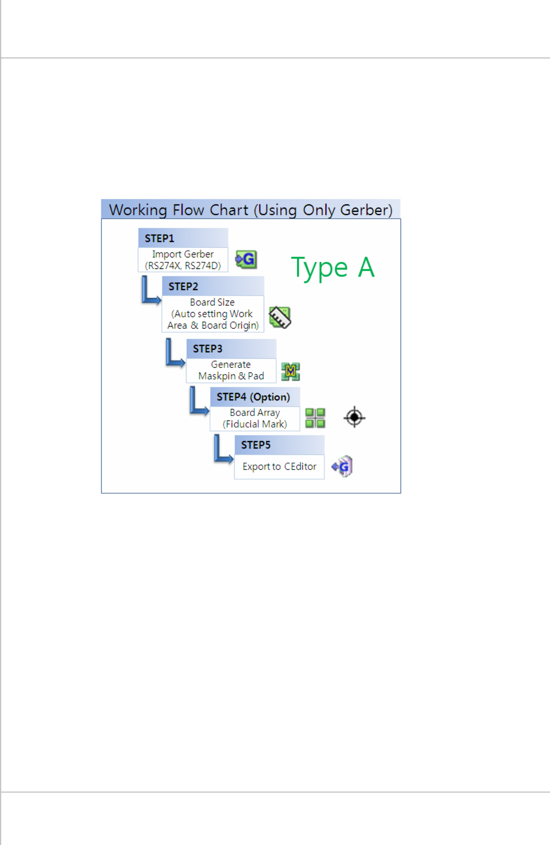 主畫面正中央顯示所以 Gerber, CAD, Pad, 以及其他輸入的Gerber 檔案 (*.g