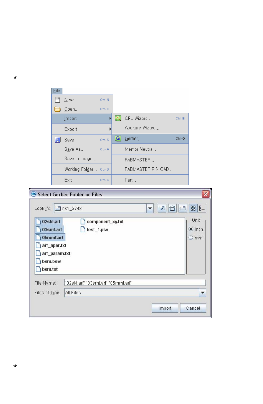 步驟 2: 選擇Gerber file 或資料夾然後擊點 “Import" 按鈕.