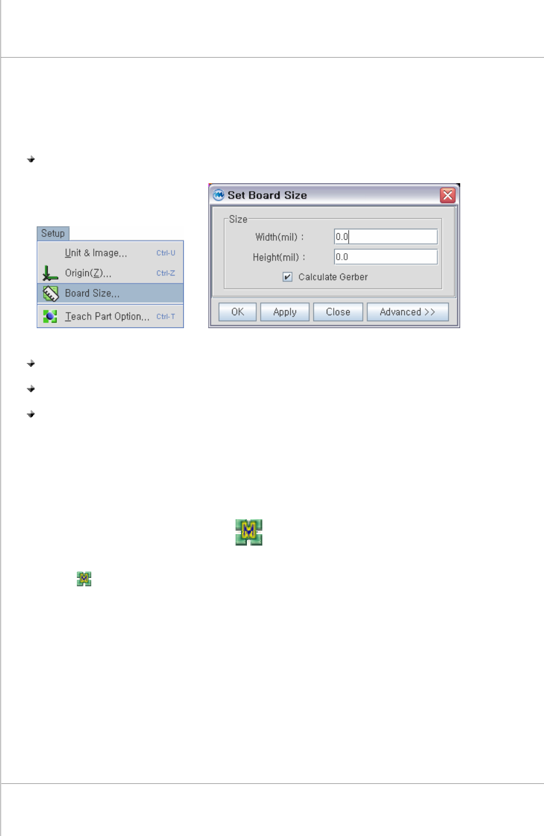 使用者可以自行輸入機板尺寸在“Set Board Size"中 . 或是在圖檔中利用滑鼠拖曳方式自動標示基板