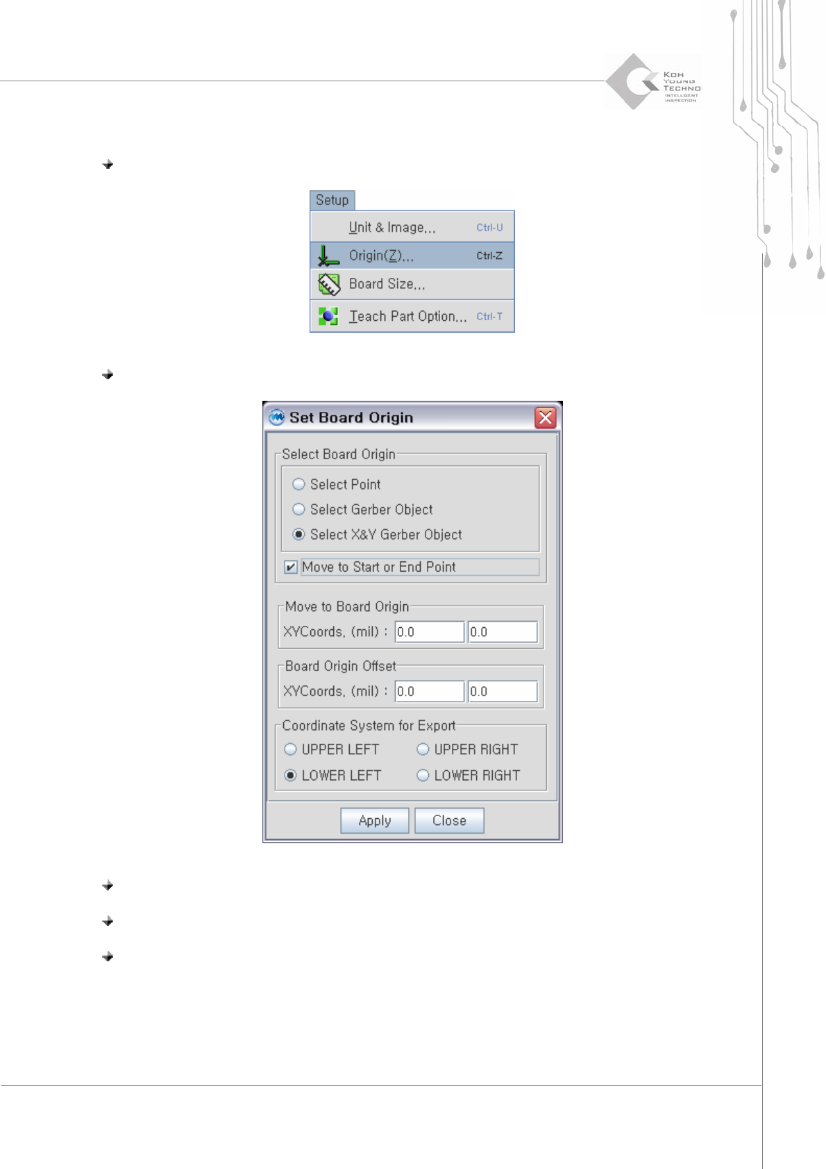 步驟 3: 在“Set Board Origin"中選擇模式“Coordinate System for Export".