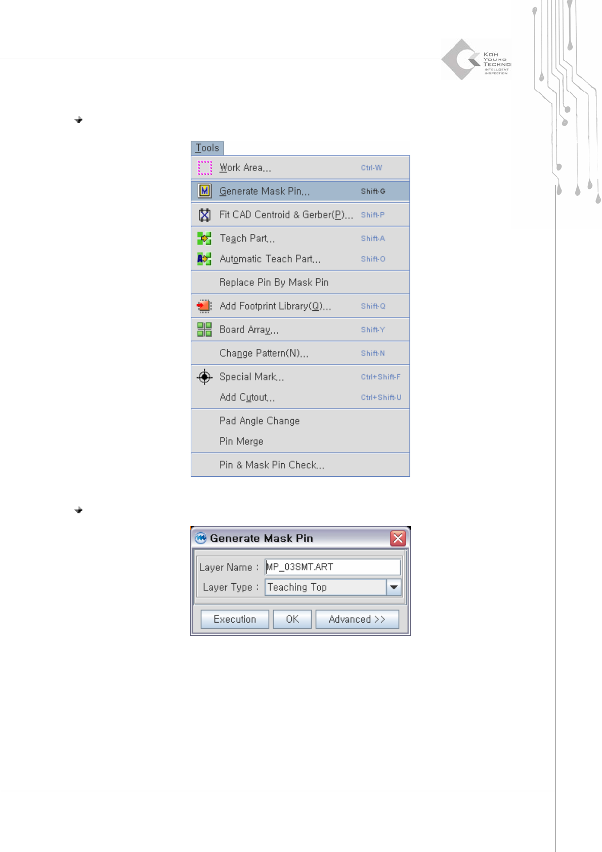 步驟 1: 在“Tools" 選單中選取 “Generate Mask Pin".