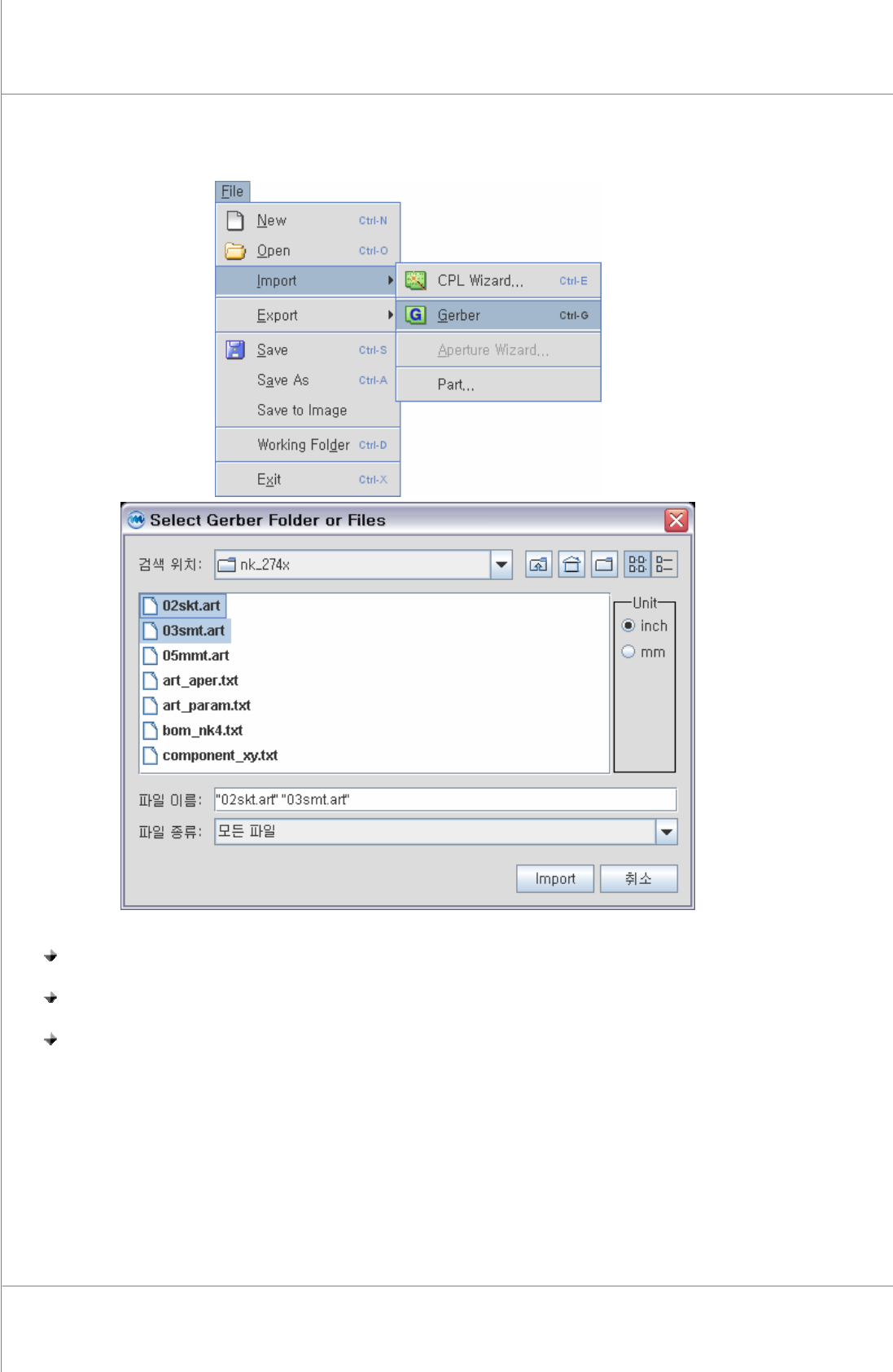 步驟 2: 選擇Gerber 檔案或資料夾後擊點 “Import".