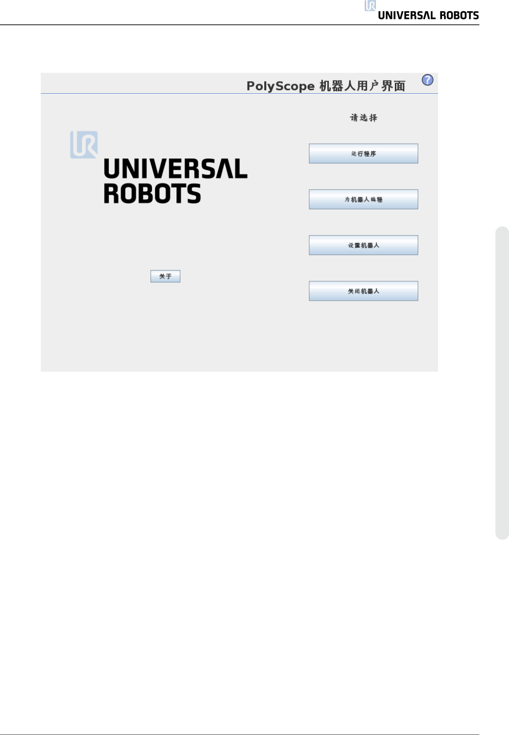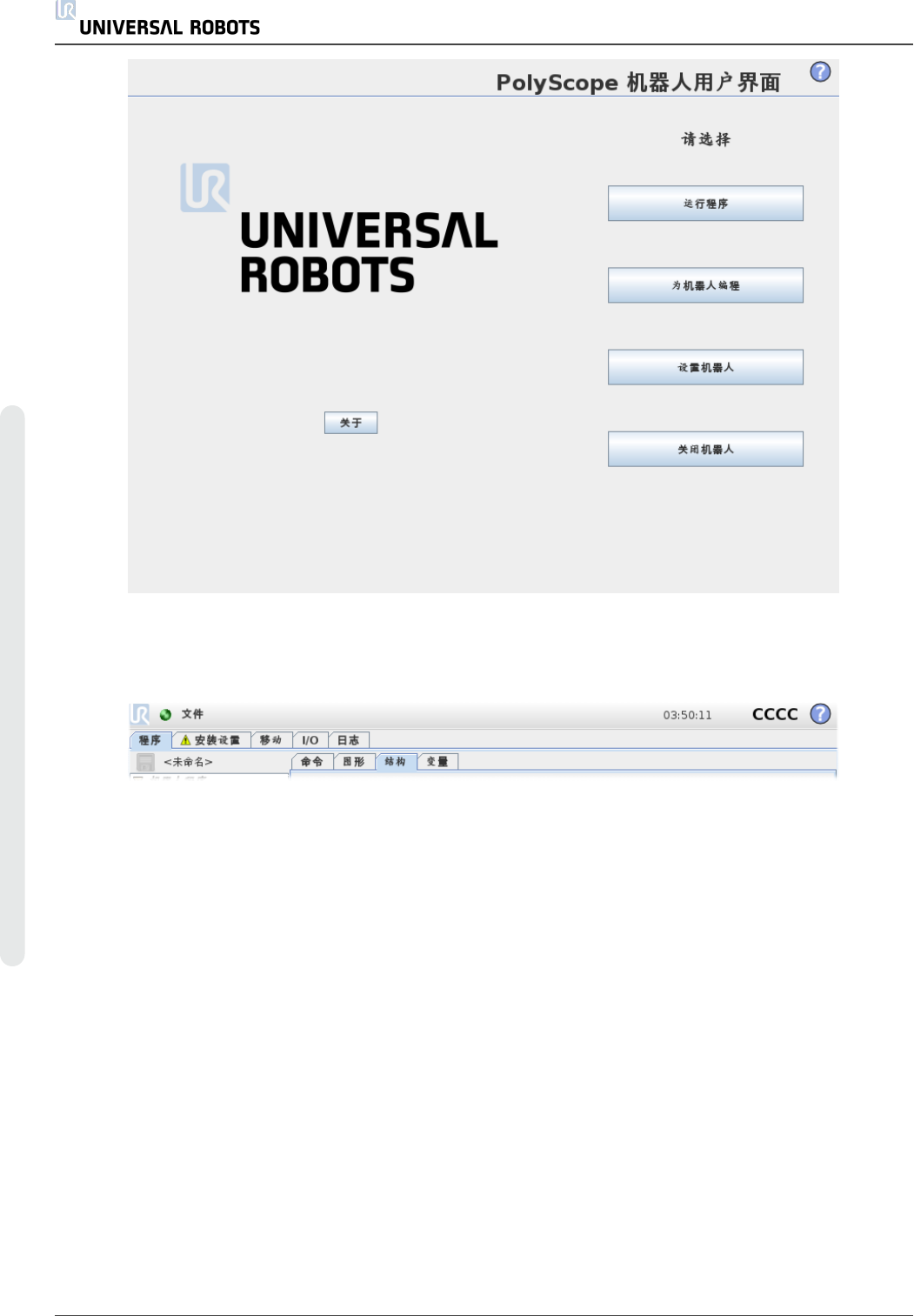PolyScope 在连接到控制箱的触摸屏上运行。