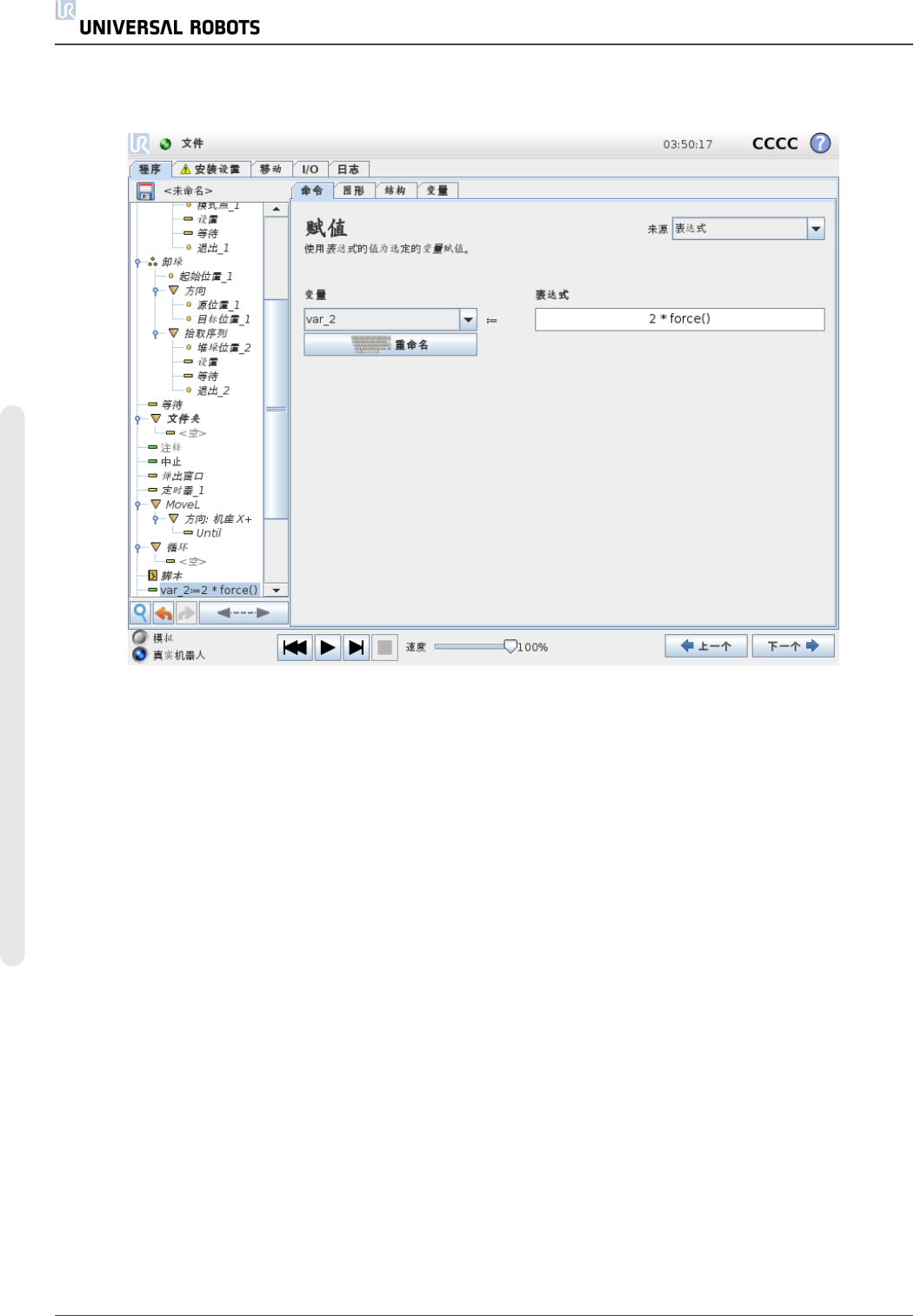 1.2 5.20. 命 令 : 脚 本 “ 命 令 ” 的 下 拉 列 表 提 供 以 下 选 项 : • 行 允 许 您 使 用 表 达 式 编 辑 器 ( 1.23 .1. 屏 幕 表 达 式 编 辑 器 在 本 页 107 ) 编 写 单 行 U Rsc rip t 代 码 • 文 件 允 许 您 编 写 、 编 辑 或 加 载 U Rsc ript 文 件 。 您 可 以 在 支 持 网 站 ( http ://w ww .u …