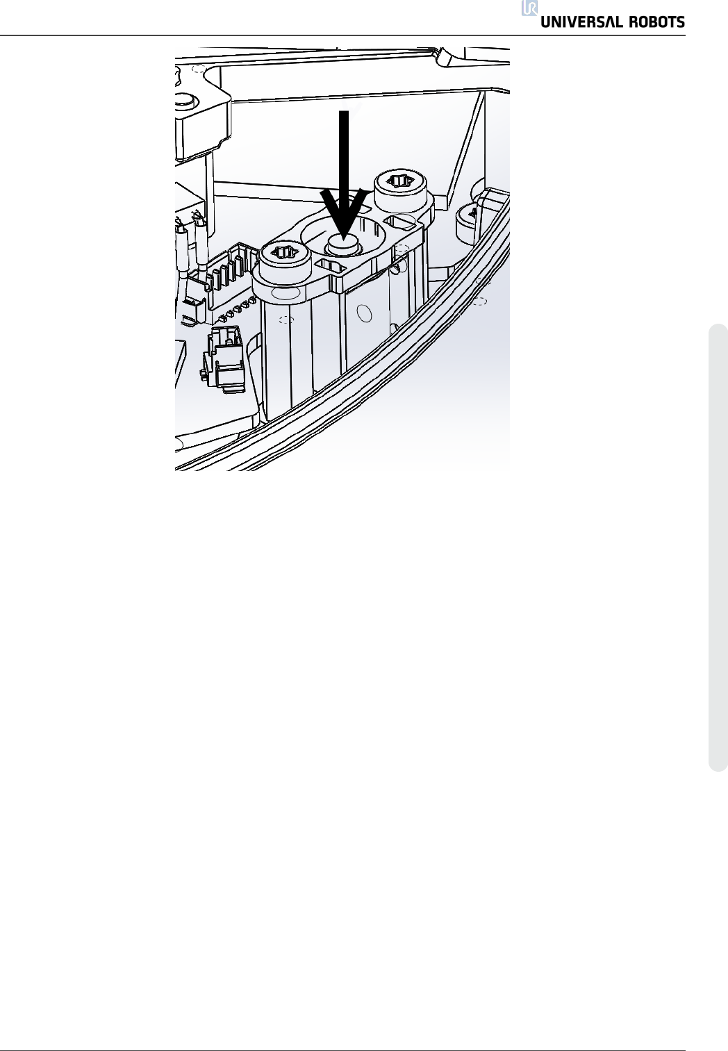 1. 手指夹在机器手臂电缆连接器和底座之间( 关节 0) 。
