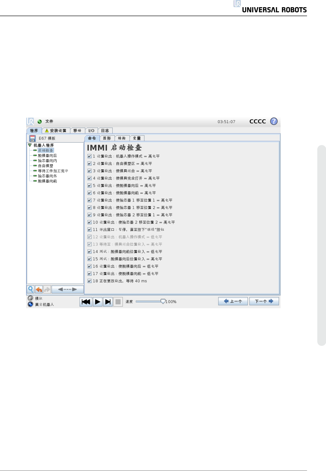 机器人程序开始处使用一次,以在开始执行模塑之前确保机器人和机器设置正确。使用复选