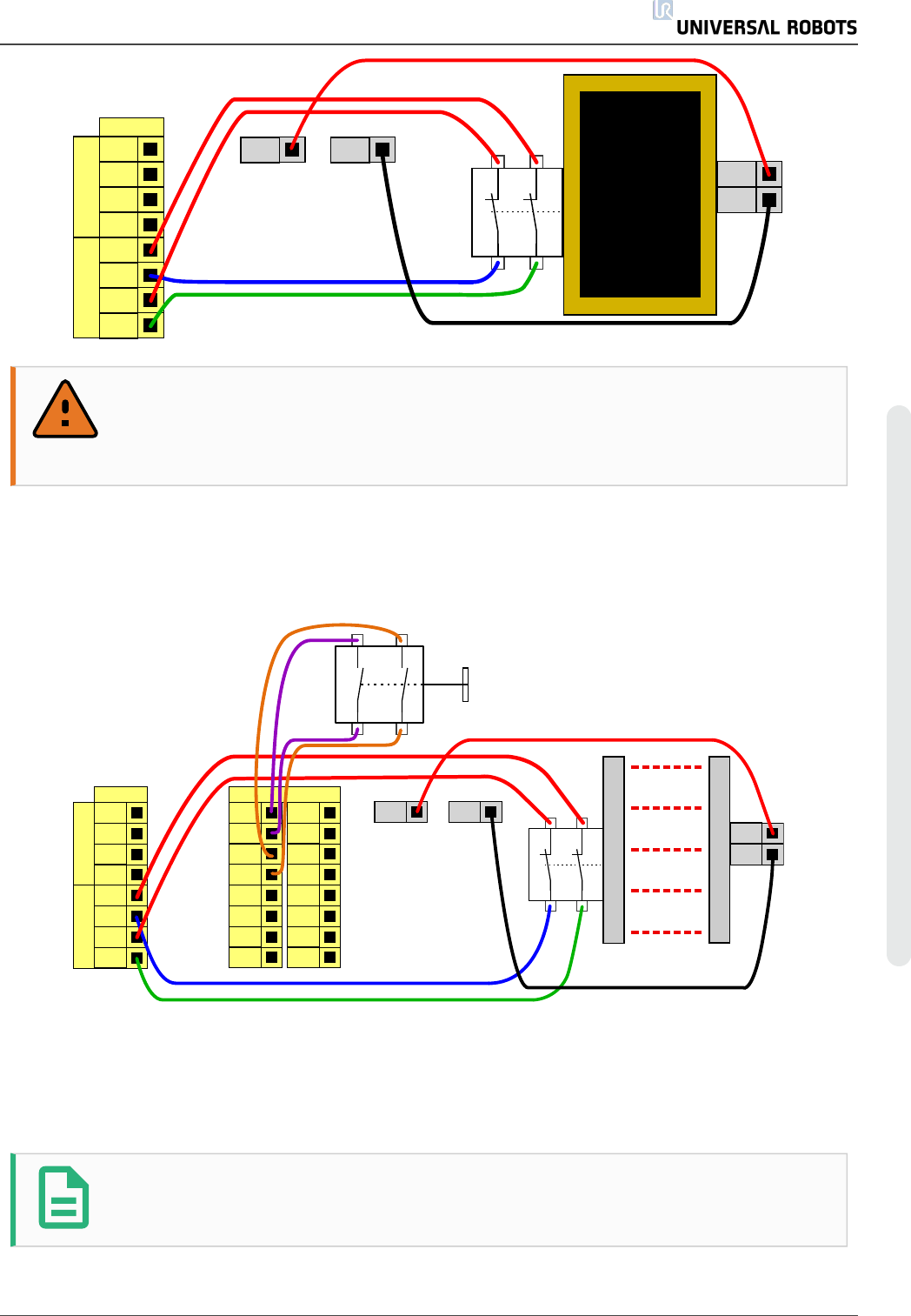 如果需要连接两台以上的 UR 机器人或其他机器,需要使用安全 PLC 来控制紧急停止信号。
