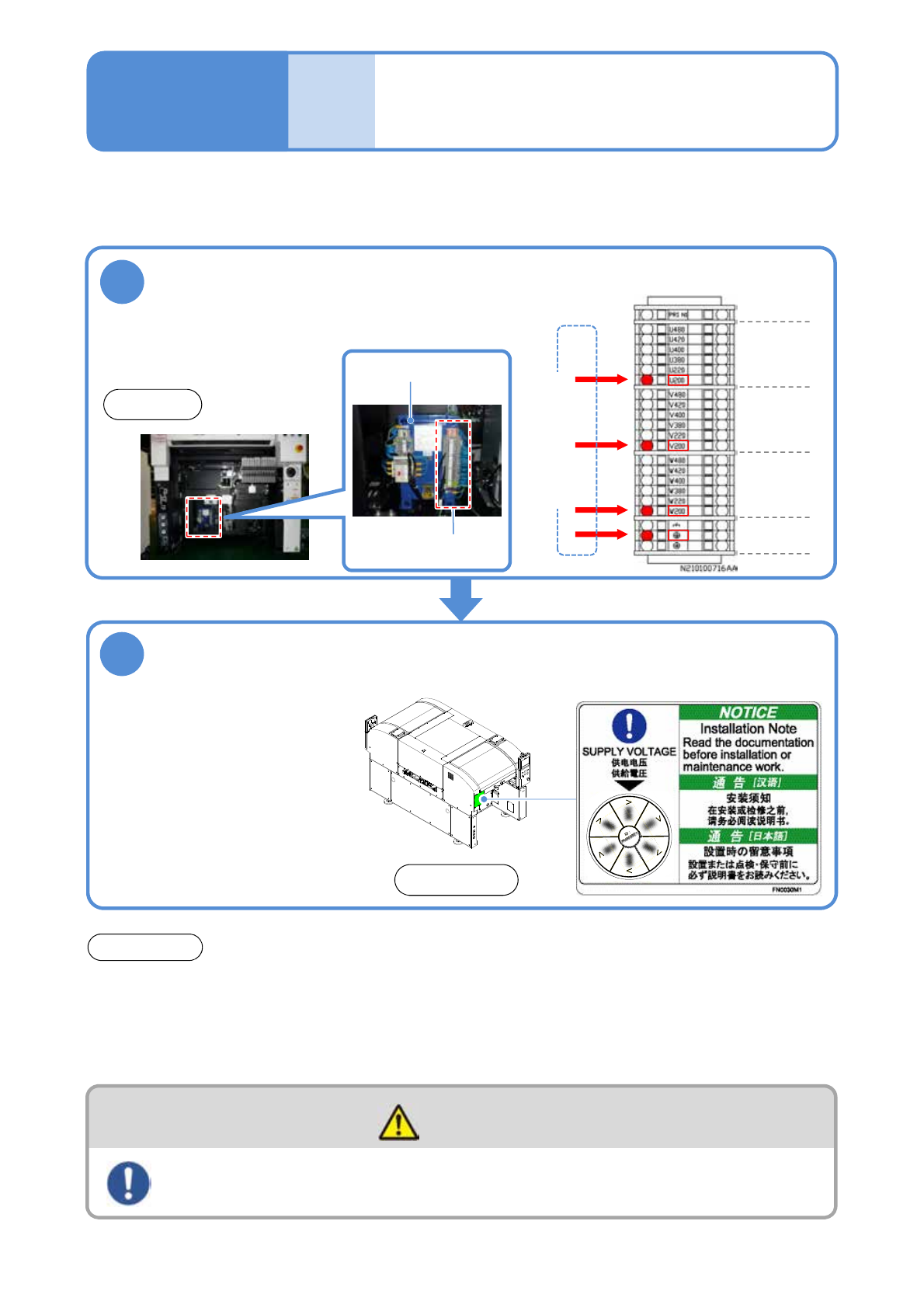●切换初级电源的分支时,请确认工厂的初级电源电压是否与插座切换电压一致。