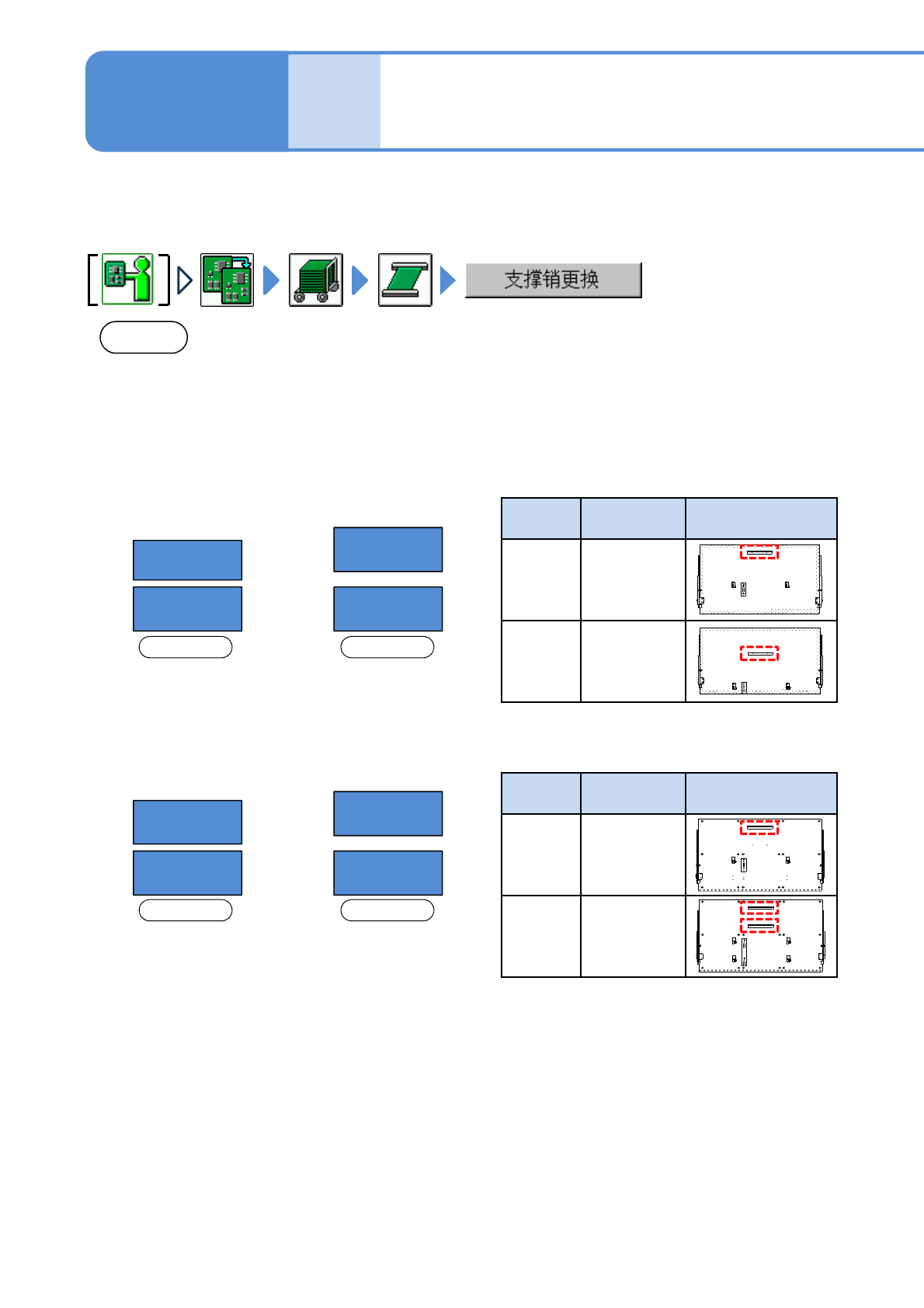 NPM- TT2 EJM1EC-MB-05 M-01 ACTIVATION 1 2 确认提示 3 顺序 9 ●托盘供料器时 ( → P.14-8 ) ●交换台车时 ( → P.3-2) 卸下基板支撑块 基板支撑块 OFF SERVO 5 4 7 6 8 把料架工作台盖往 内推 每 1 4 0 小 时 保 养 定 期 检 查 ( 前侧 / 后侧的 X 轴移动到退 避位置 ) ( 基板支撑块上升 ) ACTIVATION 用棉纱布盖在 多功…