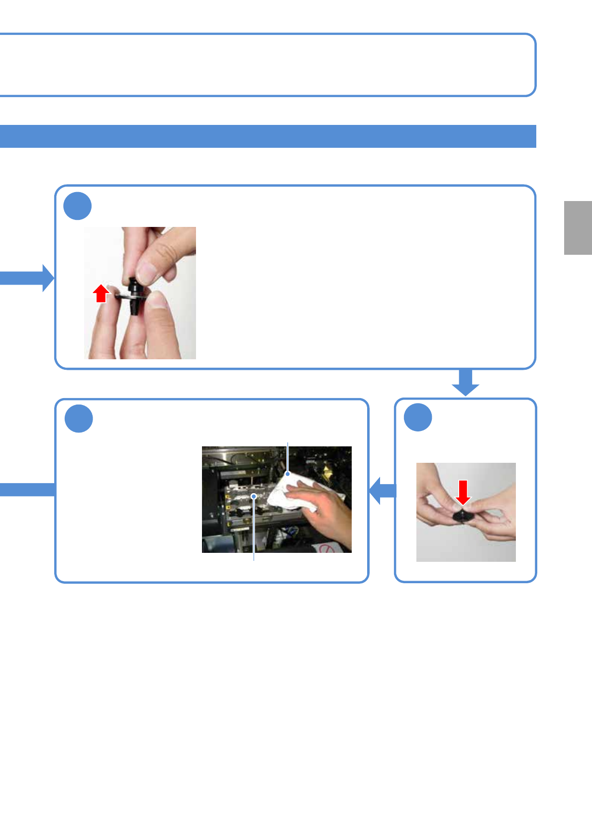 NPM- TT2 EJM1EC-MB-06M-00 6-4 -8 3 吸嘴贴装头时 2 12 清扫销清扫吸嘴内部 ●从吸嘴上侧 ( 柄侧 ) ,把吸嘴清扫销插入,排出吸 嘴内部堆积的灰尘。 吸嘴清扫销 柄 吸嘴 ( 选购件 ) 和吸嘴交换器 ( 选购件 ) 的清扫 5 18 SERVO ON 17 16 安装吸嘴交换器 维修保养篇 6-4 ●安装方法 ( → 『操作篇』 P.2-5-1)