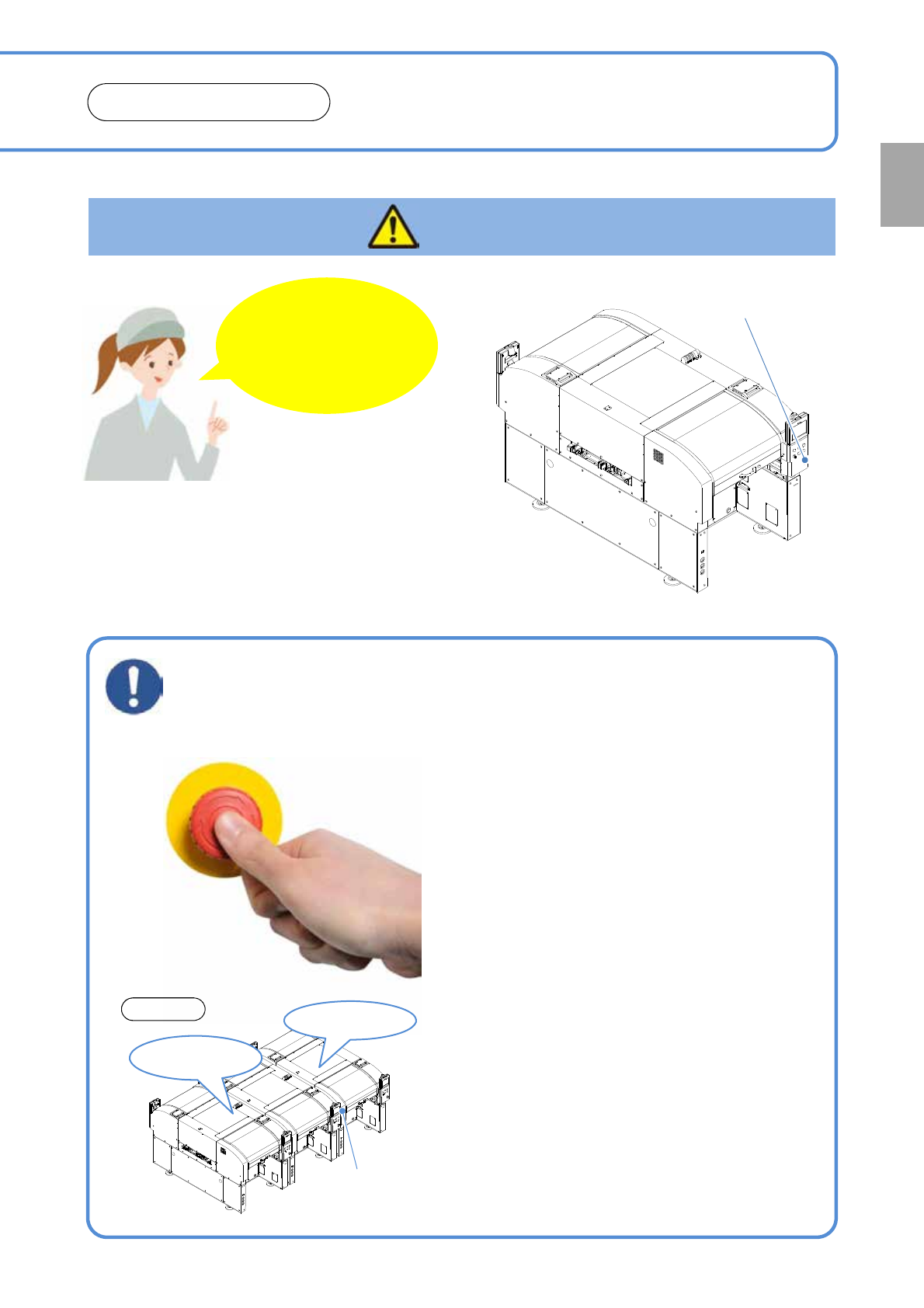 ●不仅是按了紧急停止开关的设备会停止运转,以