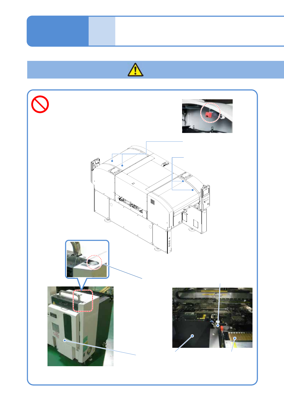 NPM-TT2 EJM1EC-SF-01N-02 1-1 -2 紧急停止开关 ( 前后侧 2 个 ) 为了防止 受伤或烫伤 … 不停止 停止 按紧急停止开关 ■ 复数台设备连接时 如果感觉到危险和异常,按紧急停止开关 ●按了按钮后,设备停止运转。 ●请按较近的紧急停止开关 (2 个 ) 。 按任一个都会停止。 [ 解除方法 ] 再启动时,请确认已经除去危险或者 异常现象,把紧急停止开关往右转。 ( 若继续运转,会发生事故 ) ●不仅是按…