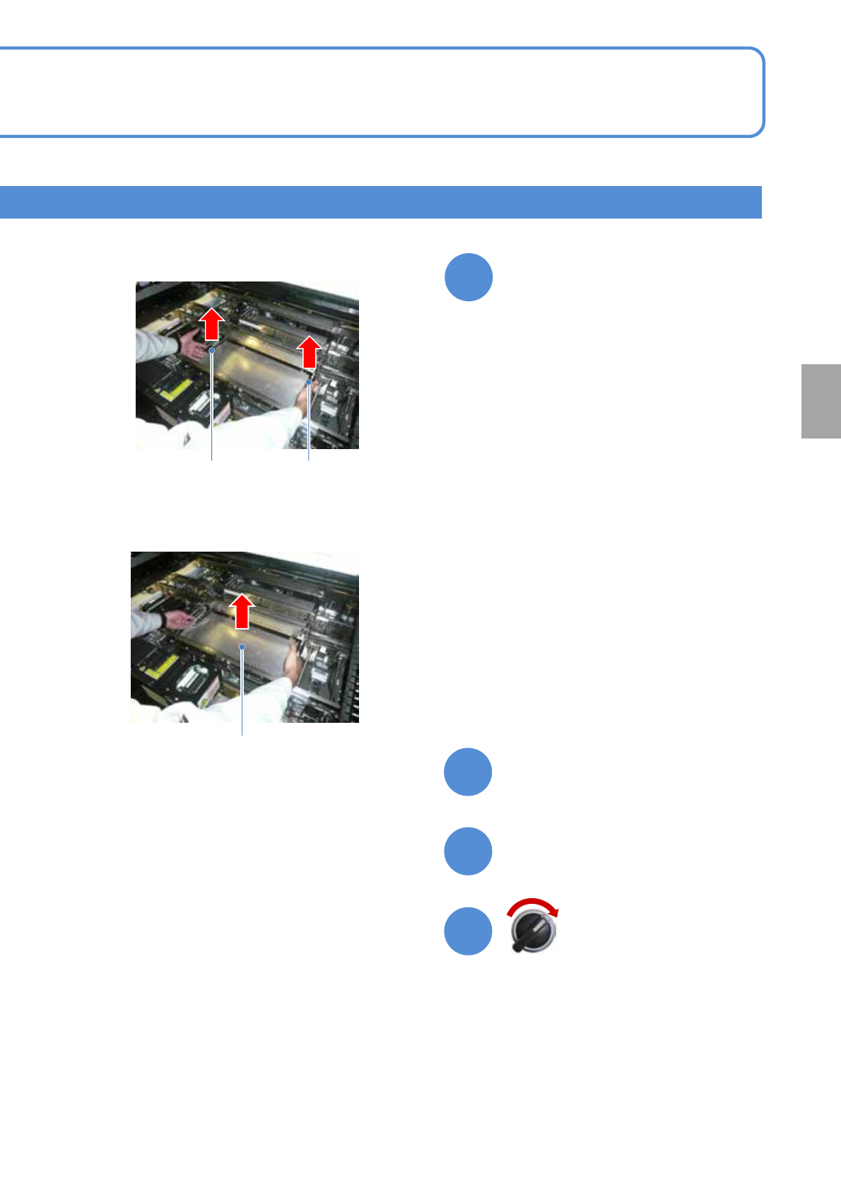 NPM- TT2 EJM1EC-MB-11M-01 1 1-2-1 -10 更 换 8 10 11 9 卸下基板支撑块 ( 轨道 1 、轨道 2) 基板支撑块 ② 拉出基板支撑块。 ① 从操作方向上提起左右锁杆。 取出锁杆 取出锁杆 ● 用双手向上慢慢卸下。 ● 注意不要碰撞或把垃圾掉到多功能识 别照相机 (LE D 照明上 ) 。 关闭安全盖 关闭供料器工作台盖 伺服开关置于 ON