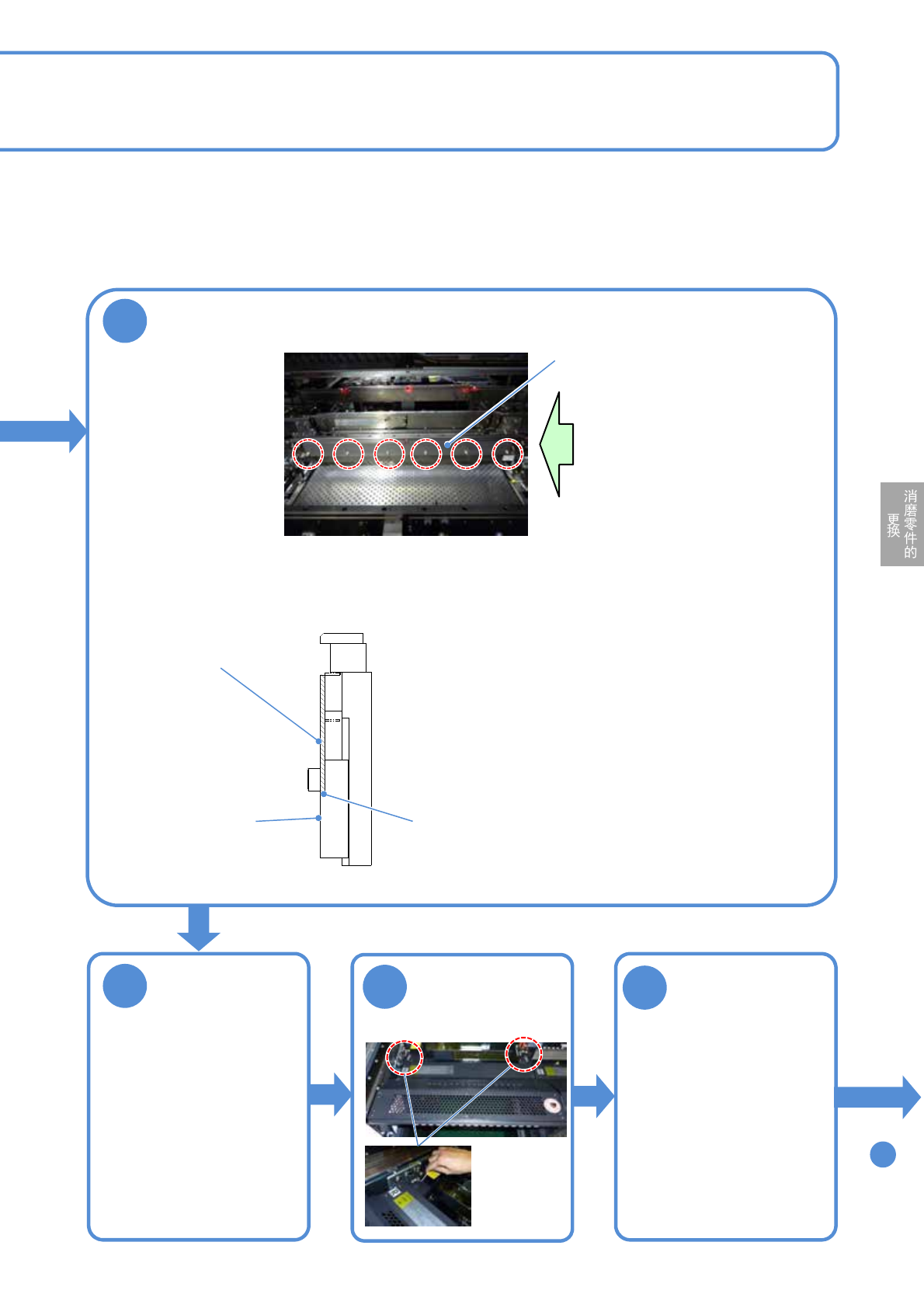 NPM- TT2 EJM1EC-MB-12M-02 12-1 -4 10 固定托板 ●螺丝 (6 个 ) 托板 ■从箭头方向所视图 托板 B 面 A 面 ●把托板碰到 A 面的高低差,与 B 面保持平 行进 行安装。 调整皮带张力 ( → P.6-5) ●螺丝 :M4 (2 个 ) 安装供料器工作台 盖 ( → P.3-3) 顺序 14 安装托盘供料器或 者交换台车 ●托盘供料器时 ( → P.14-8 ) ●交换台车时 ( → P.3…