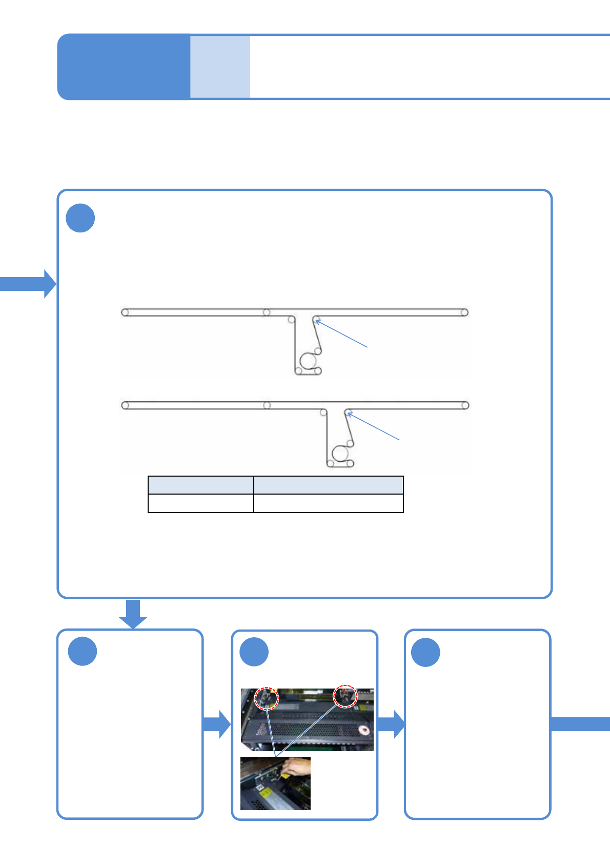 NPM- TT2 EJM1EC-MB-12M-02 延长传送带 ( 选购件 ) 的传送皮带 的更换 2 12-2 -2 维修保养篇 12-2 8 换上新皮带 皮带长度 [mm] 型号 1573 N510062788AA ■各轨道上 2 条 轨道 1 侧 轨道 2 侧 张力滑轮 ● 事先拧松张力滑轮的螺丝。 ( 各 1 个 ) ●有关皮带的正面、反面 正面 : 无印文字 反面裏面 : 有印文字 ●安装皮带时,使皮带正面为基板传 送面。 调…