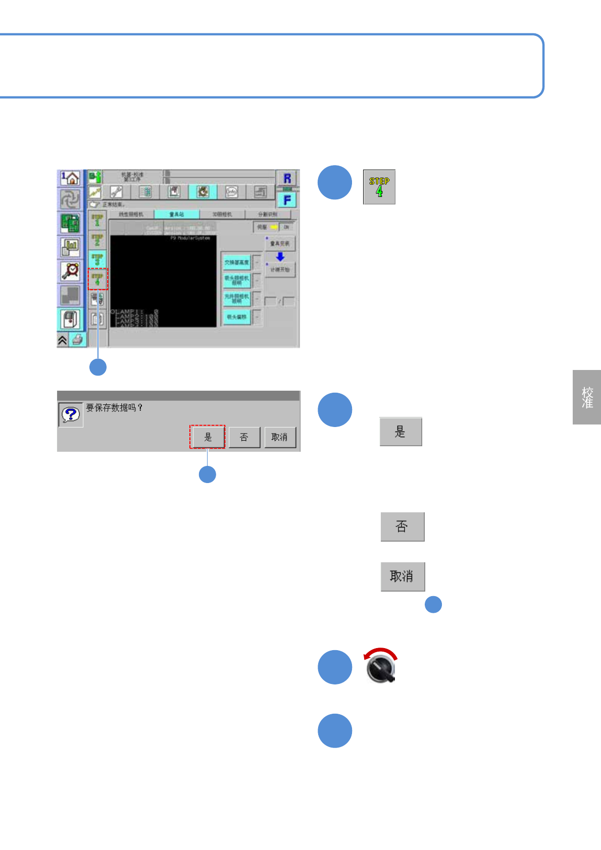 NPM- TT2 EJM1EC-MB-13 M-00 13-10 -6 24 确认提示 ( 校准作业的数据被保存 ) ( 贴装头移动到退避位置 ) ■不保存时 ■取消时 ( 仍然是 的画面 ) 24 25 23 25 打开安全盖 26 27 伺服开关置于 OFF