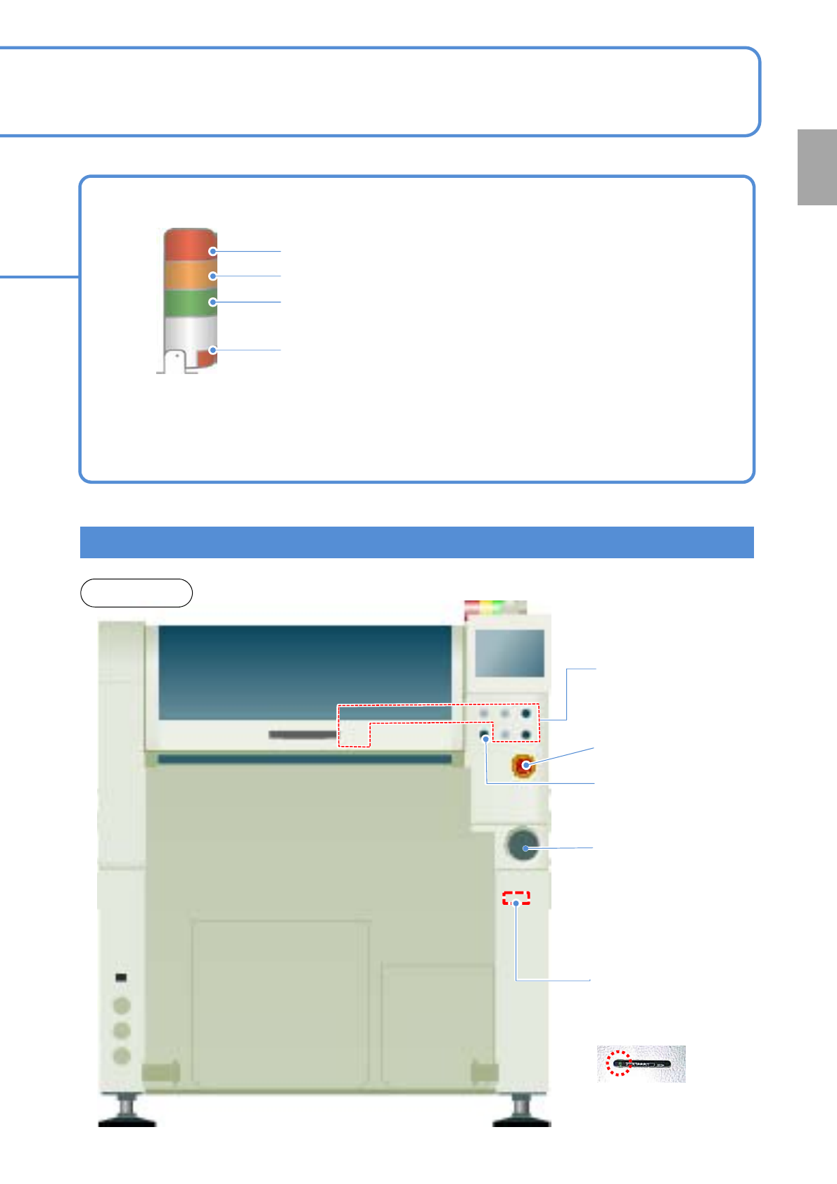 NPM-TT2 EJM1EC-SF-01N-02 1-9-1 -2 操作单元 各种操作开关 进行运转开始和停止等操 作。 伺服开关 伺服系的动力为 ON 或者 OFF 。 紧急停止开关 紧急停止运转。 主电源开关 ( 前侧 ) 电源以及空压源为 ON 或 者 OFF 。 ( 主电源开关为 OFF 时,会 联锁达到气压降低 ) SD 卡插槽 ( 前侧 ) 进行各种数据的读取和写 入。 信号塔 红色 : 按紧急停止开关时和错误停 止时会亮灯…