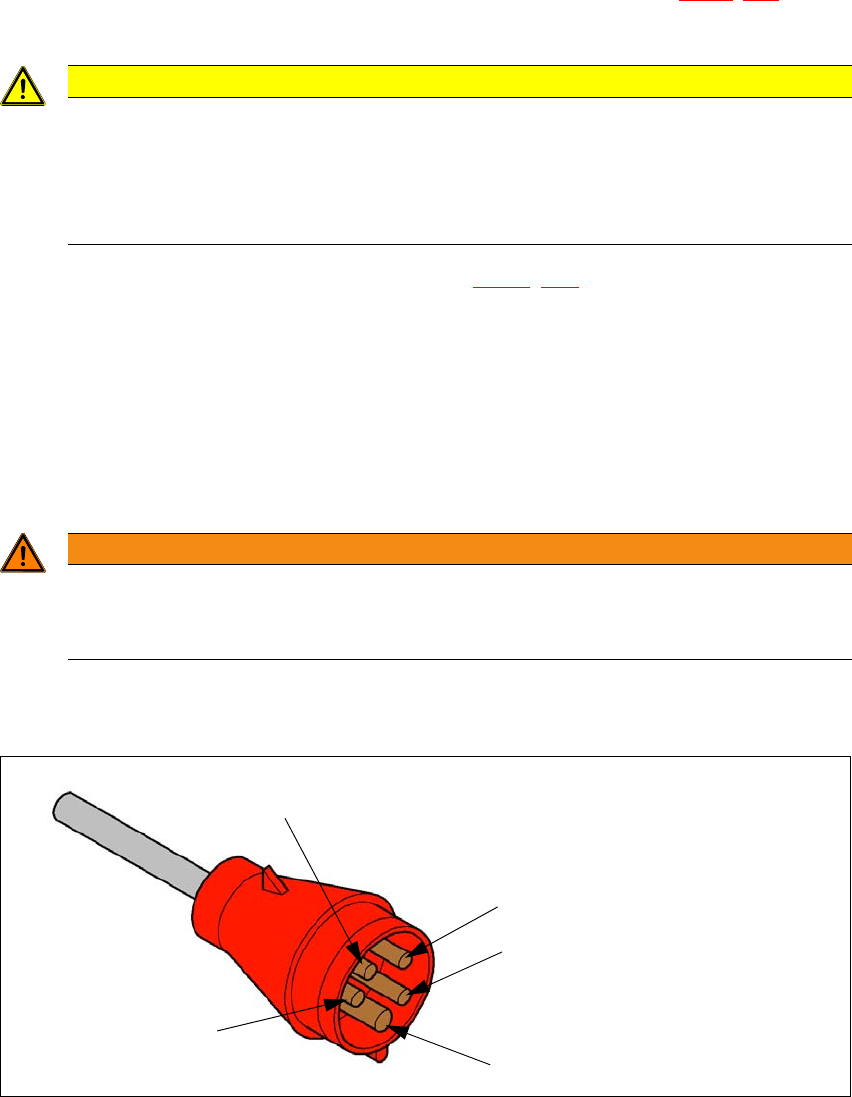 실장기는 길이가 약 5mm 인 , CEE 플러그가 장착된 주전원 연결 케이블 ( 적색 16A, IEC 60309 에