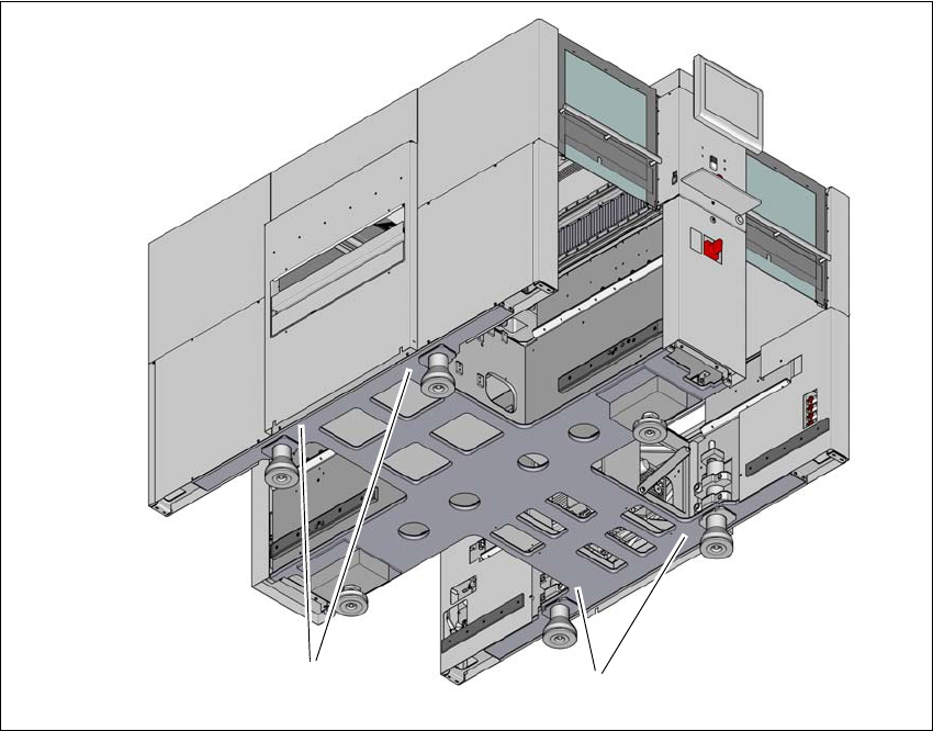 그림 4.3 - 13 에어 쿠션 운반 시스템의 접촉 지점 (SIPLACE X2 S/X3 S/ X4 S 의 예 표시 )