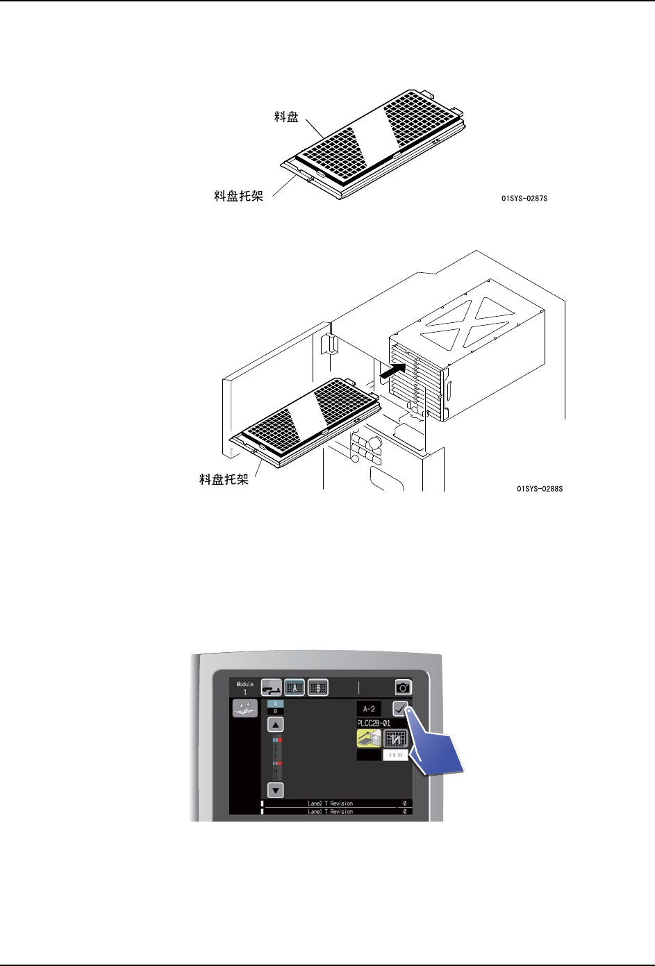 1. 将料盘安装到料盘托架上。